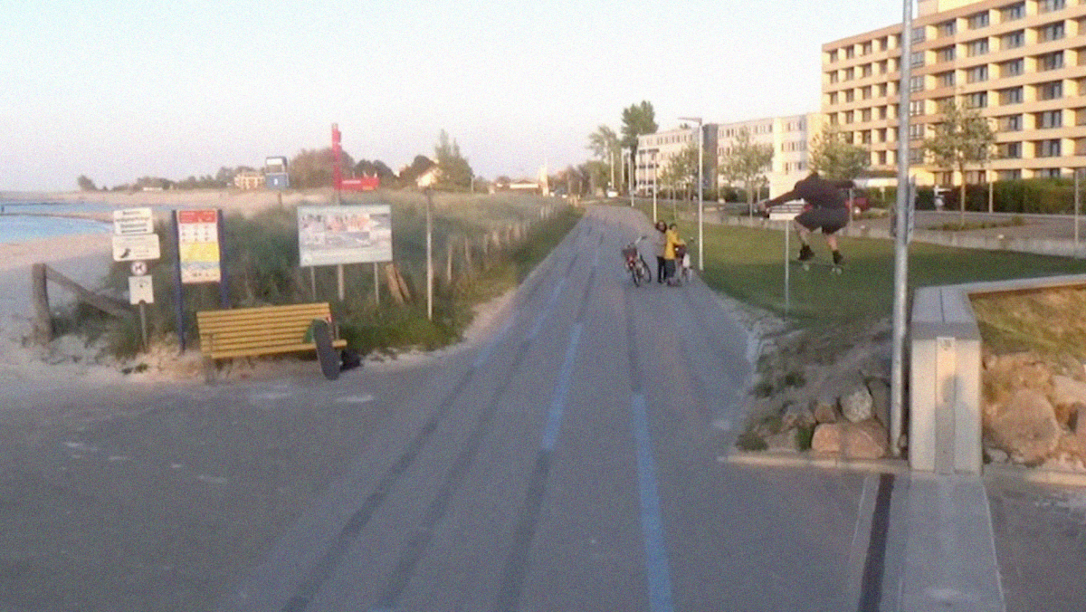I actually lost one board to the sea, which I couldn´t get out no more, the water was too deep and dark. And I only broke the one in that last scene with our grumpy neighbor, definitely because of him, I think, there was too much adrenaline floating for something that involves a 540° board rotation… So I usually go through four boards a year and break one of them inbetween, that´s been my rhythm for ages. And sweet that you mention the water, because when the part kinda came together I realized that there´s a lot of clips with ocean in the background which was not intentional at all, and is kinda rare in skate videos. Then again I live in a place they call ‘land between the seas‘, so I´m stoked I can represent that, especially by accident. But it´s no secret, every tiny harbor has at least one little spot just as every industrial area has something to skate. Just look for it and get creative… and maybe ride bigger wheels!