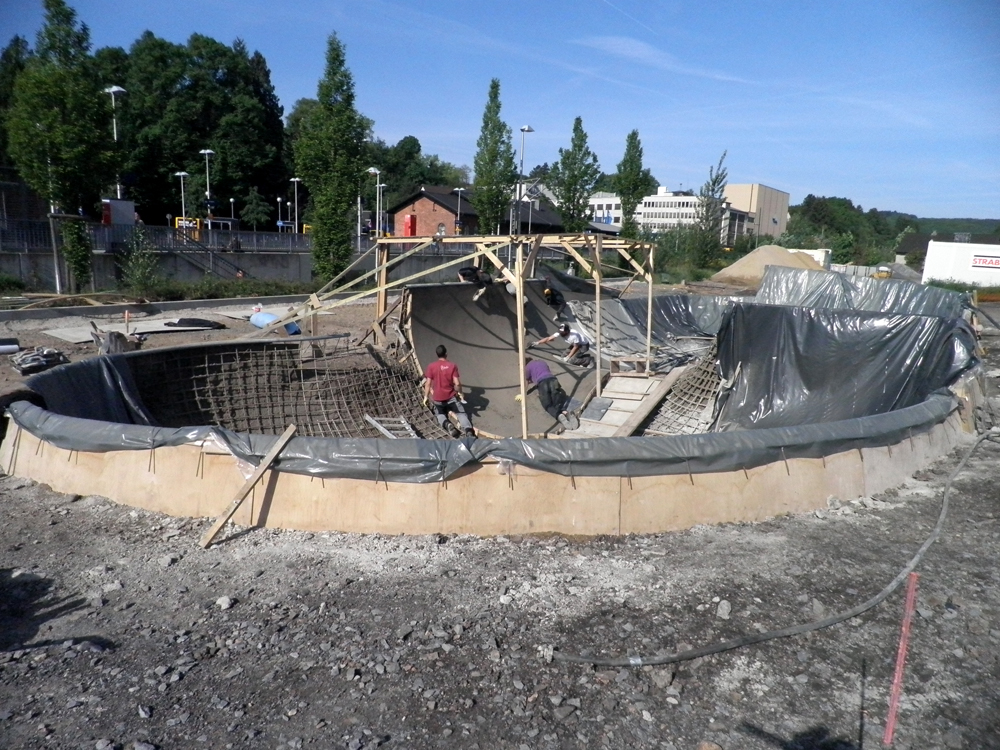 In progress: In the small town of Eitorf, outside of Siegburg, which is about 20 minutes from Köln, Germany is a fairly decent sized skatepark being built by Minus Pools.