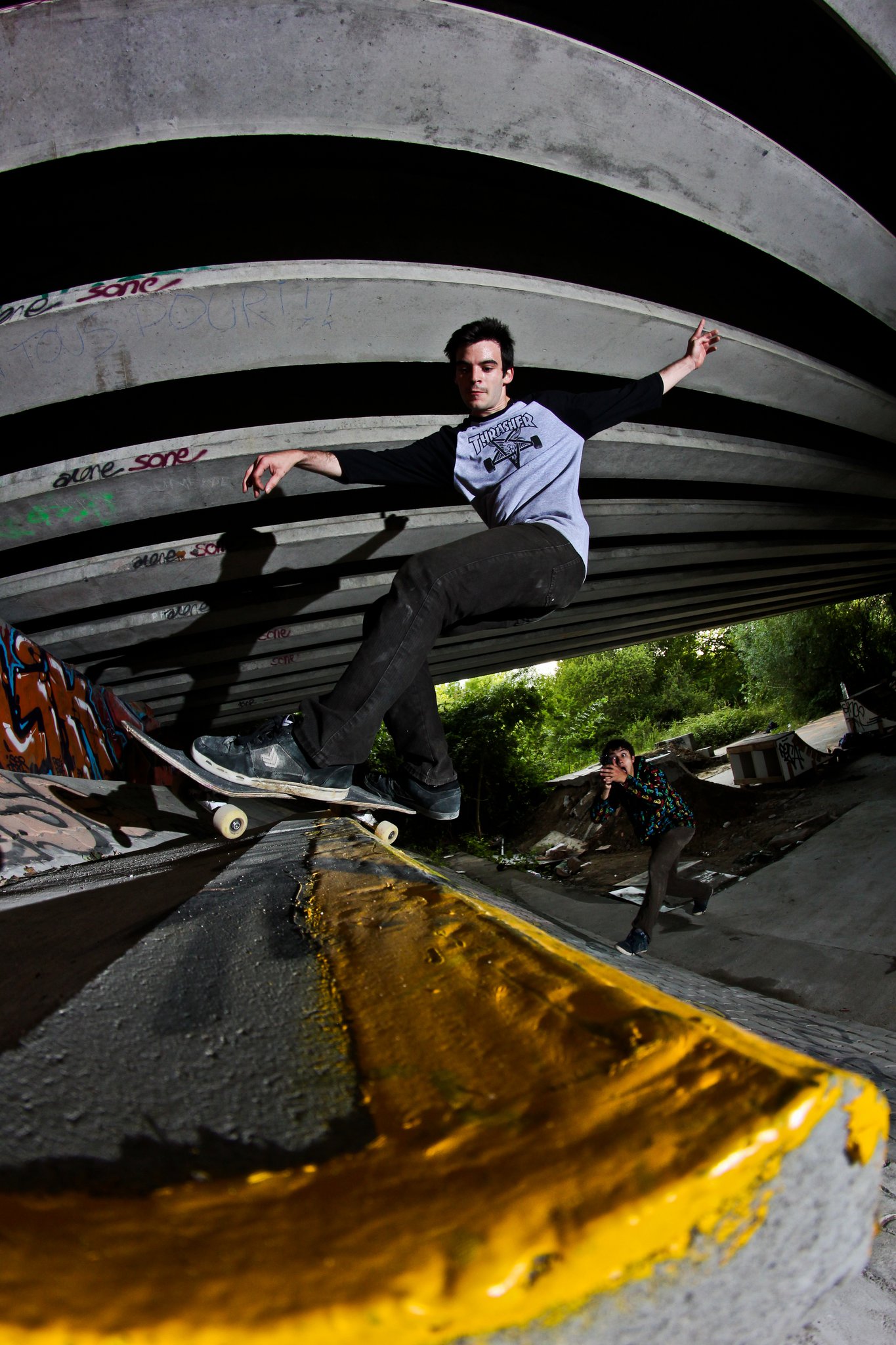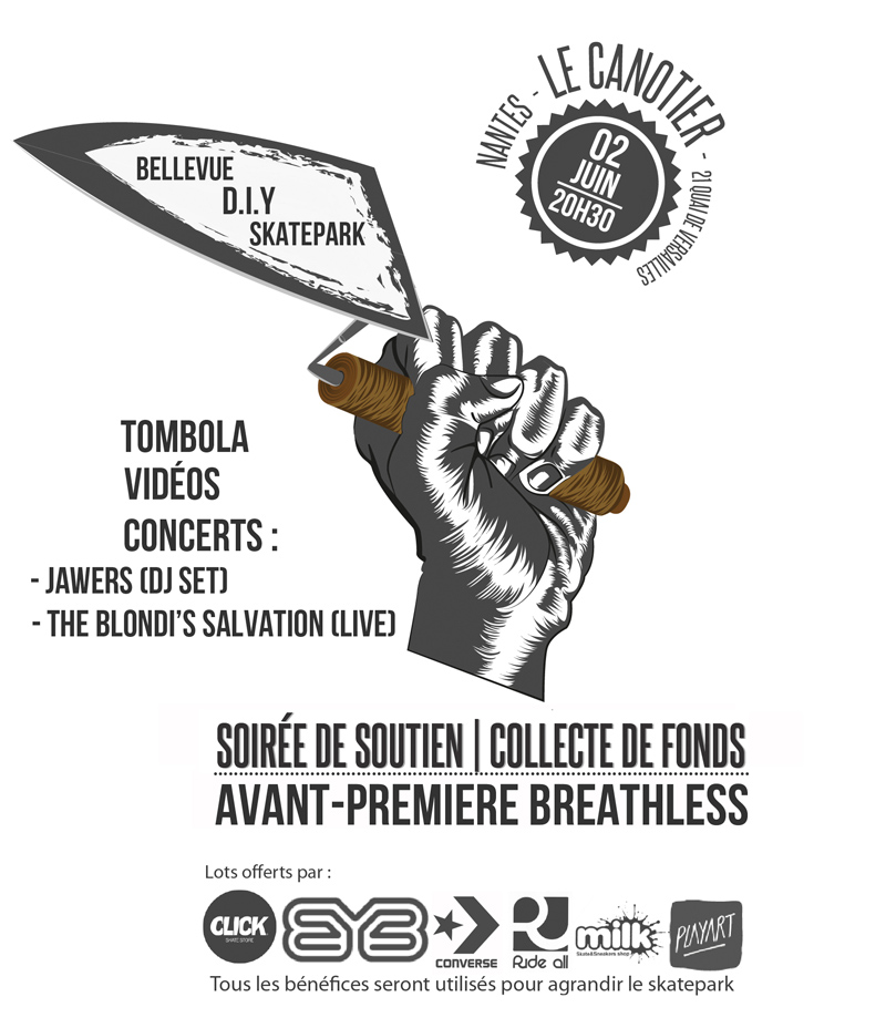 Breathless features a lot of DIY spots so the locals at Pont Bellevue decided to organize a lottery and a fundraiser during the release of the DVD to get money to buy more concrete for their local “under the bellevue bridge” spot.