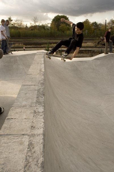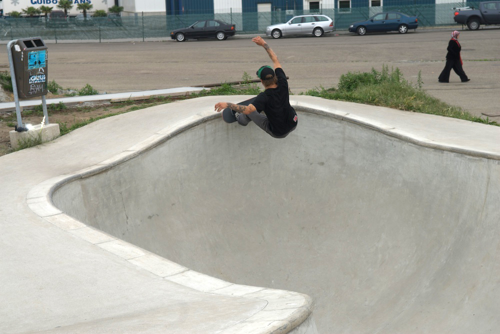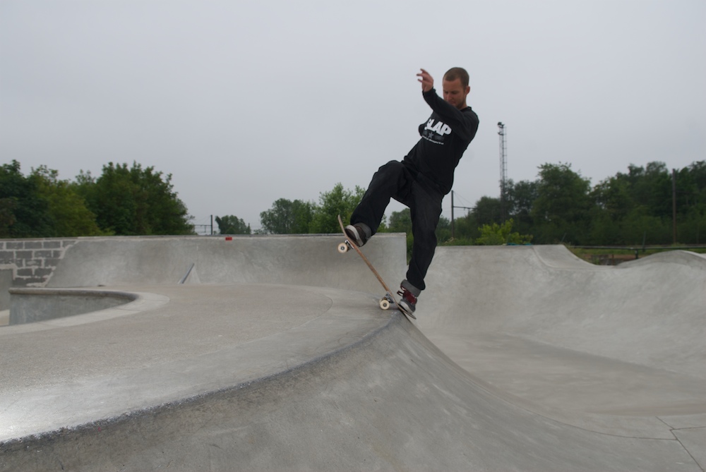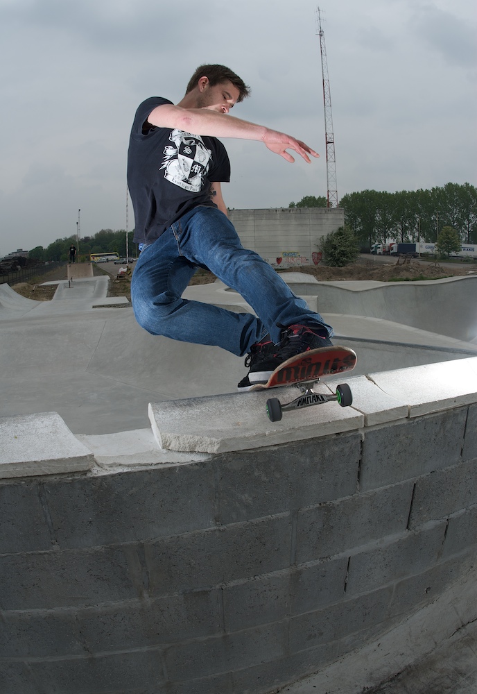 I definitely would not say Mechelen is the easiest park to skate, as it is a mix of street and transition skating – not just a bowl you can drop into and figure out your line in ten minutes. Mechelen is a skatepark not just for transition dudes, but also for street skaters, but best suited for those skilled in both ‘disciplines’. Take for example the video below of Hans Claessens made by Mechelen local Ralf Goossens. Hans uses every inch of the skatepark and mixes his street and transition skills at a spot that is not only built to grind but also built for pumping around at high speeds, wallriding, transferring and blasting off every bump and obstacle in your path.