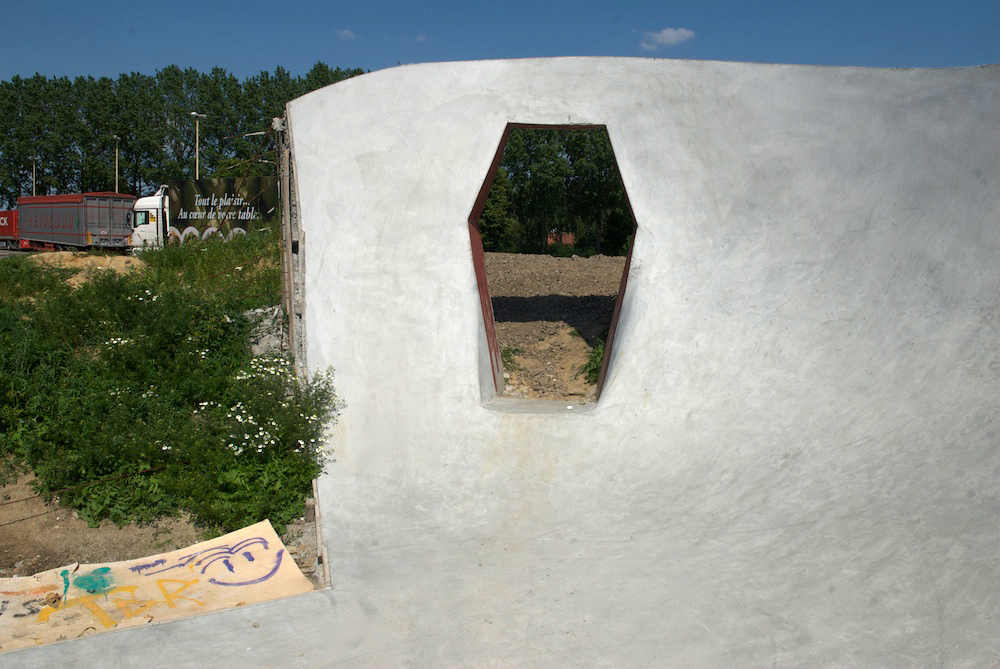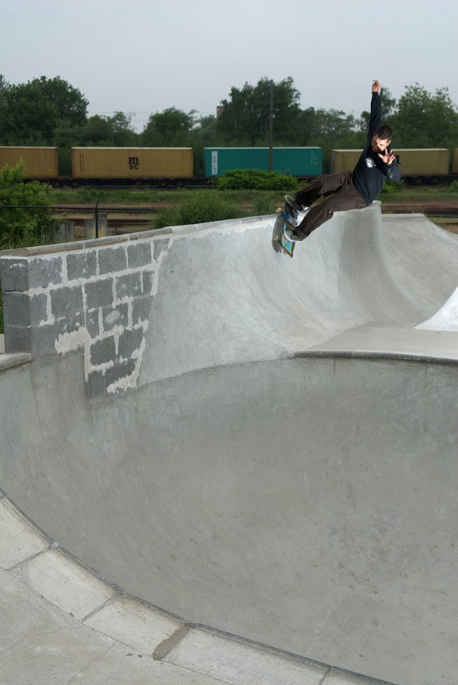 Mechelen is located in the Flemish Region/Flanders in the northern part of Belgium, about 30 minutes south of Antwerp. I hadn’t visited Mechelen since last May and in this time, Bruno and his Concrete Dreams crew have been using Mechelen as a testing ground for new techniques, obstacles and features that they can then implement in a variety of skateparks they’re building around Belgium. Therefore, Mechelen has a little bit of everything: a bowl, a concrete miniramp, ledges, pyramids, speed bumps, tables, corners, a loveseat, a tombstone door for the daredevils to attempt, and a skateable perimeter speed line that goes around the outside of about half the park.