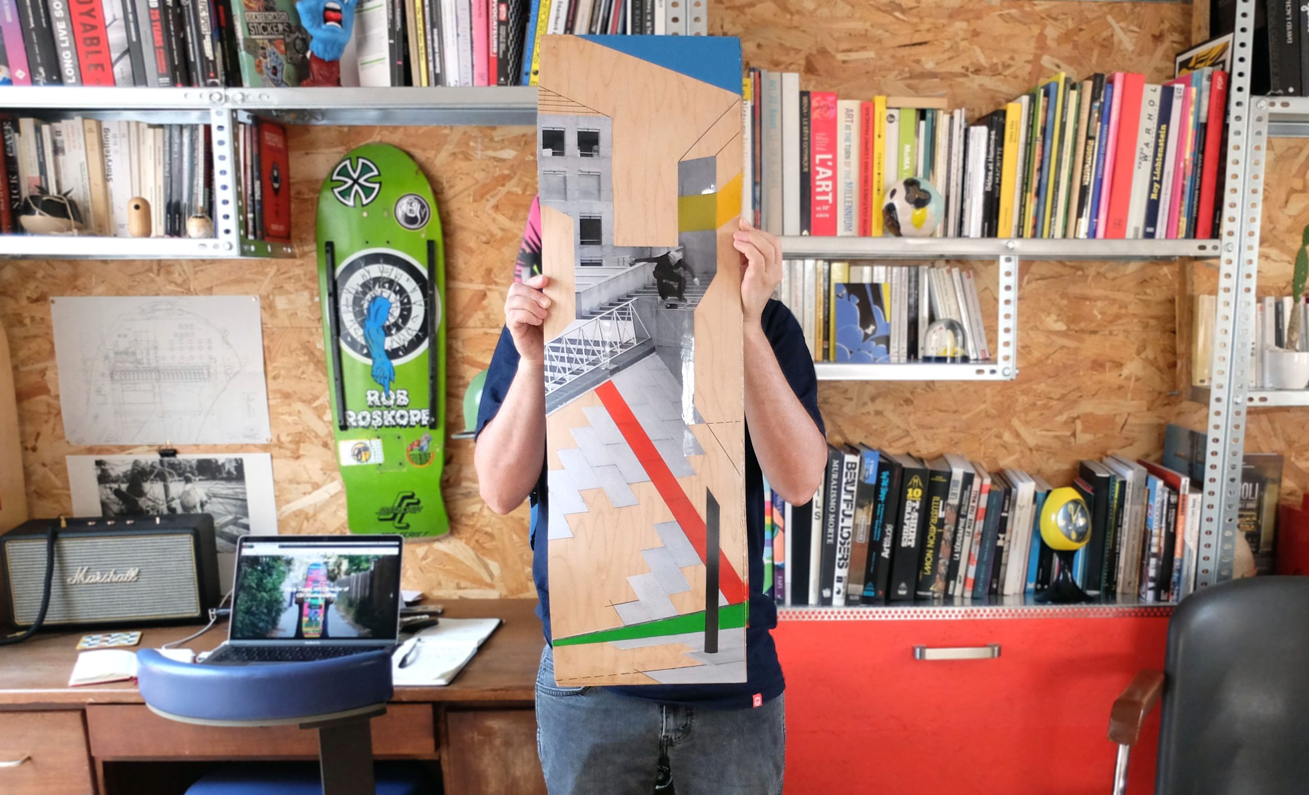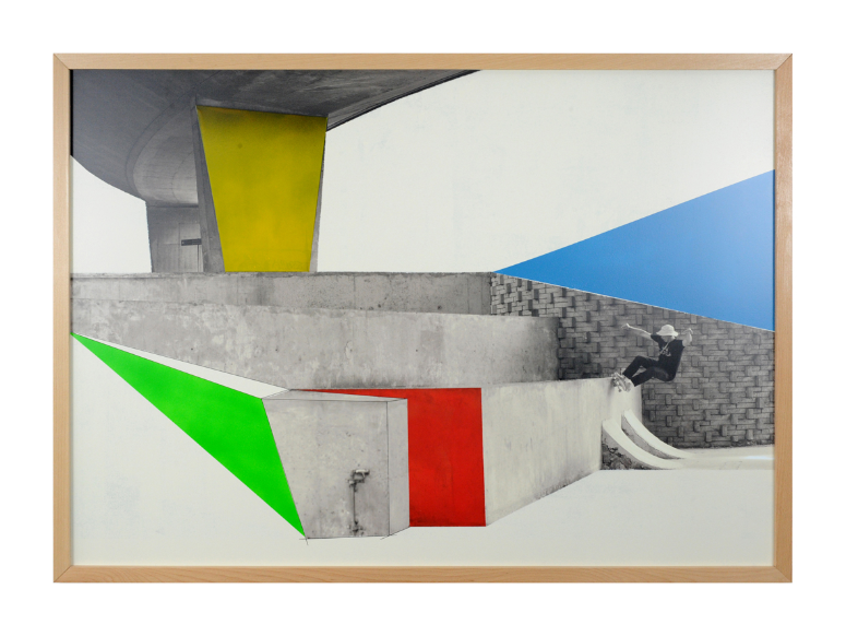 Based on photographic portraits, the skateboard legends of the 80’s, such as Steve Caballero, Christian Hosoi, Eric Dressen and Ray Barbee, are represented with their favorite playgrounds, behind bottom. Here, the iconic skaters are considered as ” architects ” of skateboard such as Le Corbusier, Gropius, Aalto or Eames. Both artists pay tribute to the idols of their youth and their historic spots.