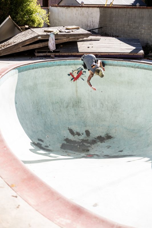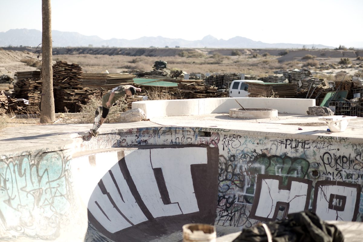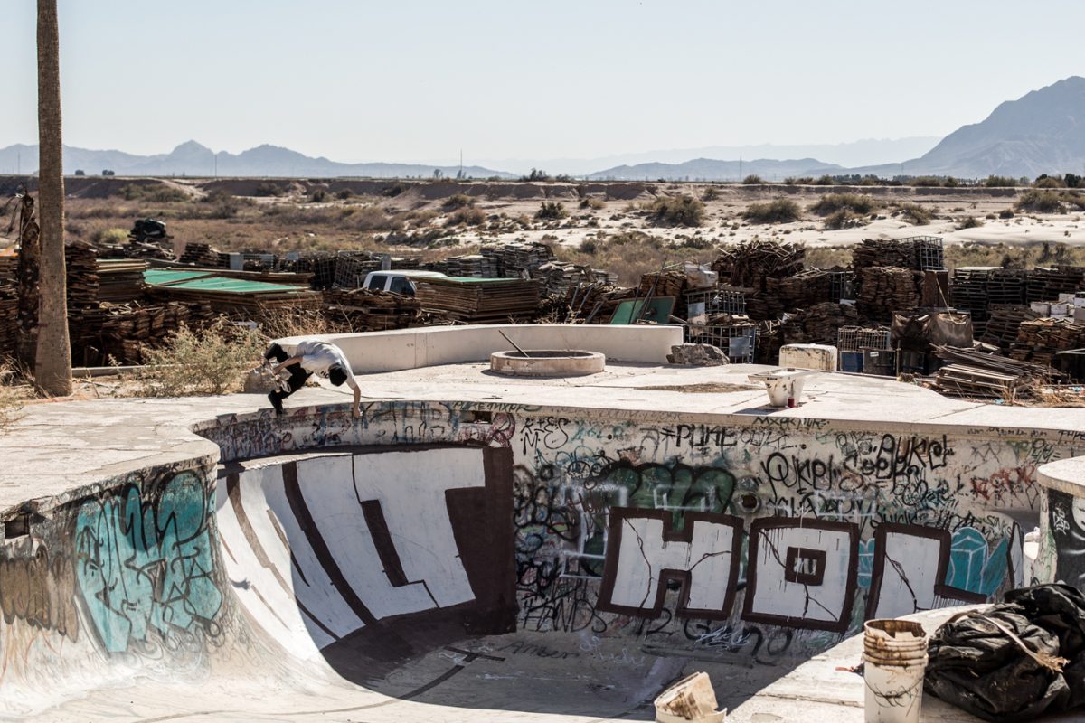 “It was 6pm on a Saturday night and I was headed down to LA from Tahoe to meet up with Zach Cusano and Chuck Pontone who flew in from Denver. Got down to LA by 2 am, slept a few hours and then we were off to hit some pools bright and early. The first day we hit a few pools in the LA and Hollywood surrounding areas bartering weed and beer for permission to skate from a tweaker and some construction dudes as well as one barge. Next day we met up with Peacock, Tristan Rennie, and CJ Collins at Peacock’s house and headed south towards the border.