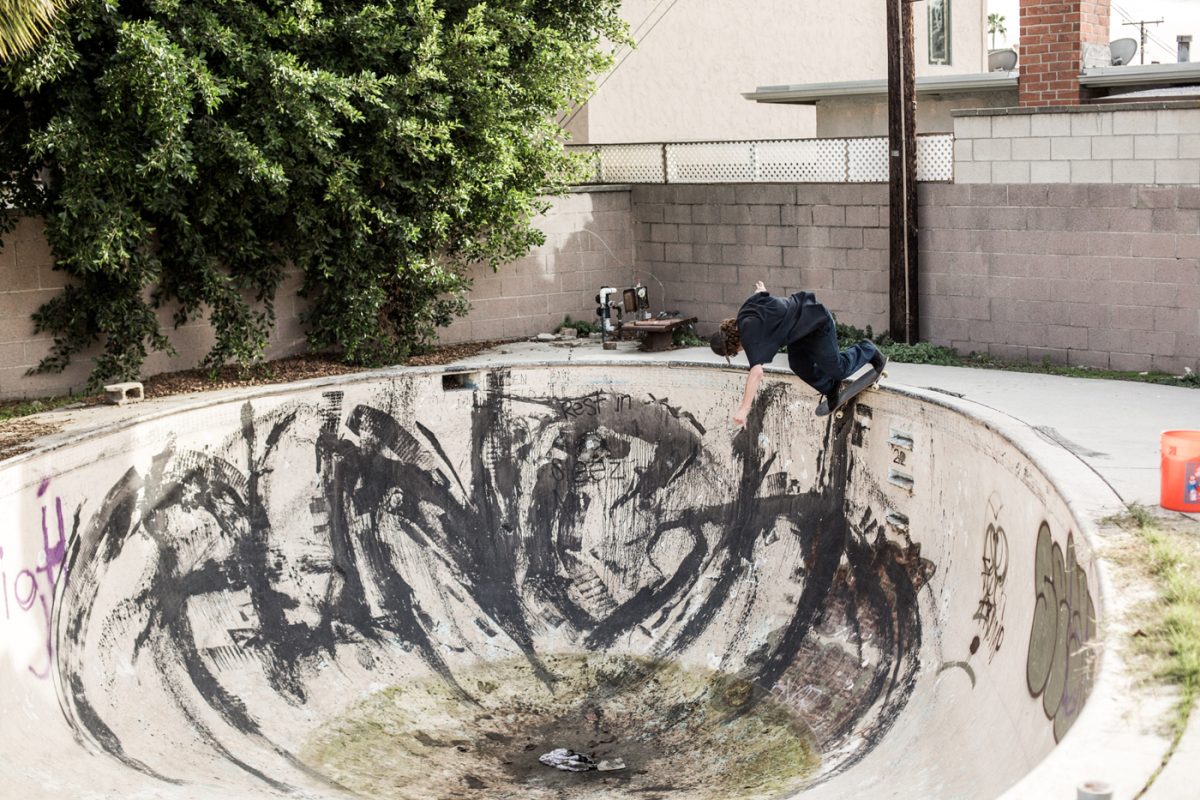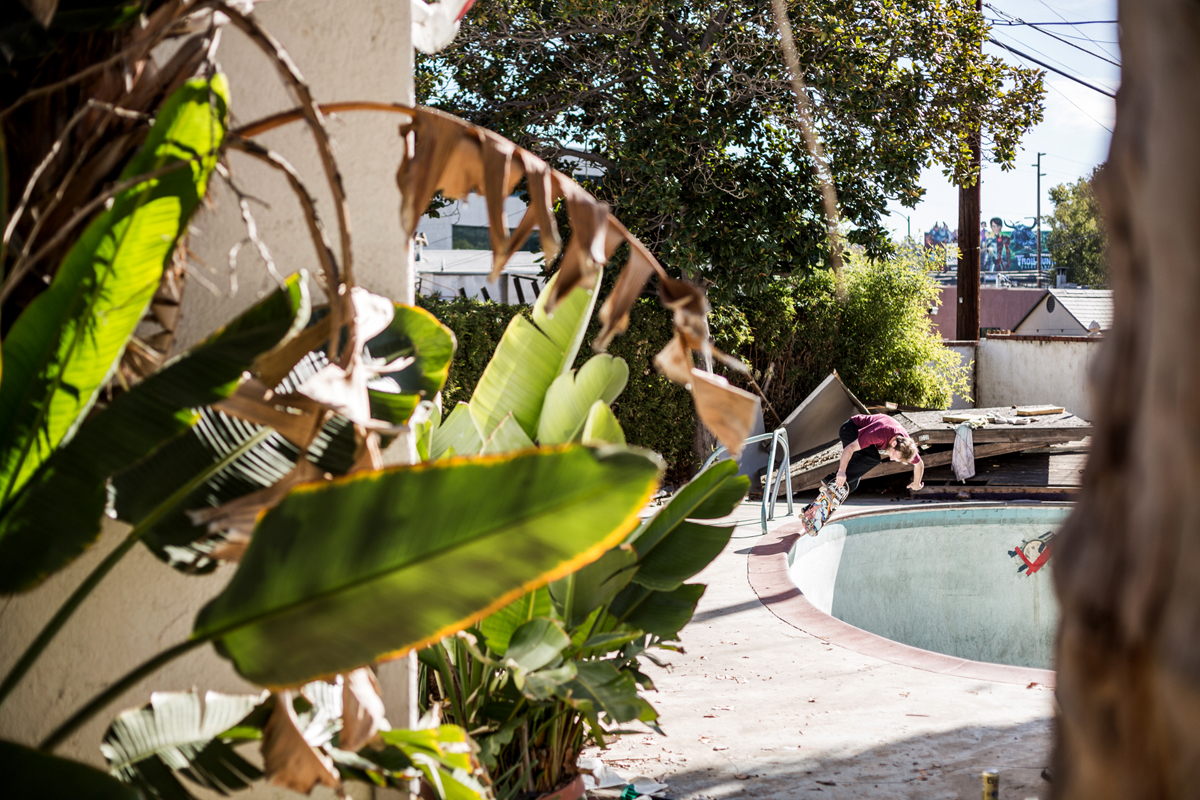 Josh brought us to this really rad spot just about ten minutes from the border. It was the perfect place to take photos. Bee boxes everywhere, a sick background with some desert mountains, a graveyard of old cars scattered all over, and a gnarly pool with some thick loaf and a sick euro. The last day the Danglers had to leave on a late flight so that gave us just enough time to hit one last pool. We got to this pool and it was a real shit pit. Scum lines and scum water all in the deep end. We drained the pool, dried it up, and got to skating. We had 30 minuets to get the tricks and to get the shots or else the homies were going to miss their flight. In the end we made it happen. Chuck and Zach got their tricks and I got the shots. Three days and eight pools. Three homies from the east coast meeting up in LA and getting it done. Everyone got their own and everyone killed. Rad times and rad people. Big thanks to Zach and Chuck for telling me to make the trip down, and to everyone who made the trip possible. We made the Westside Connection.”