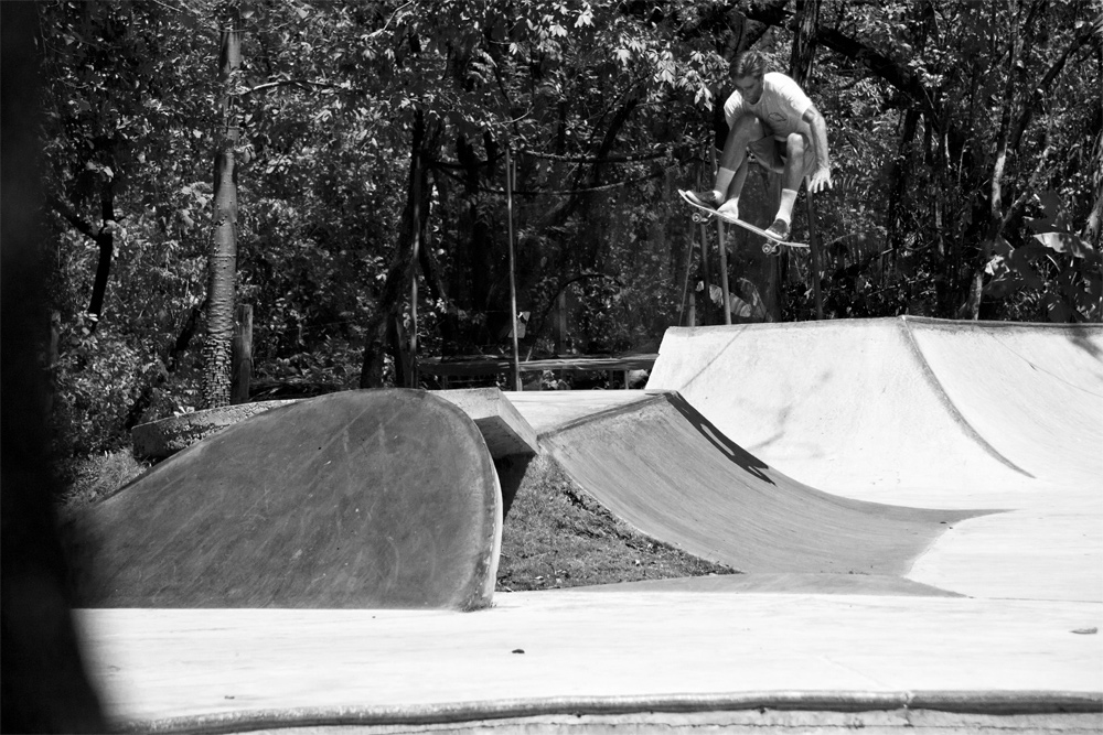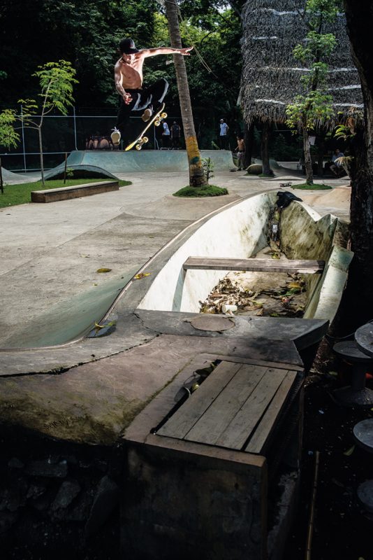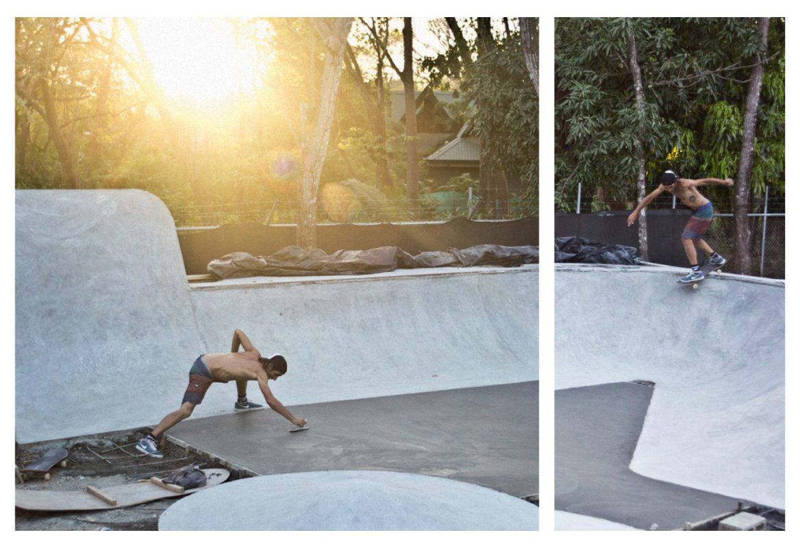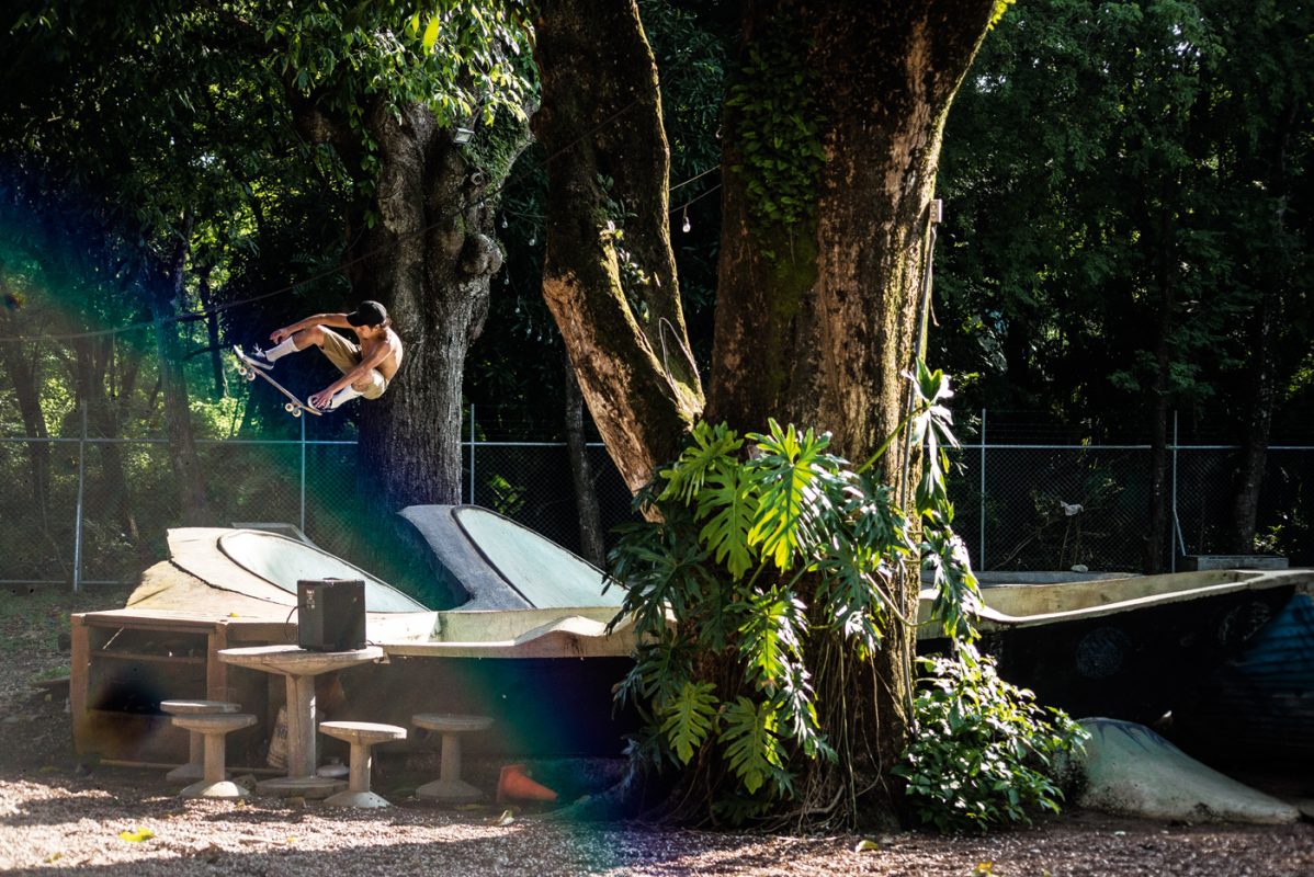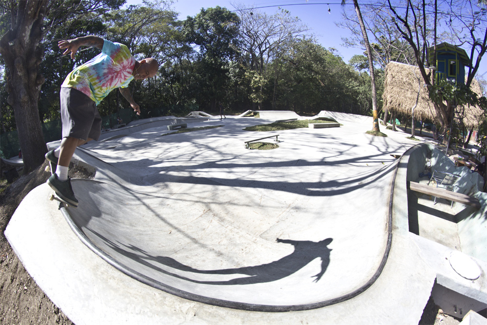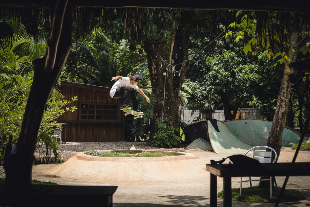 One hour away from Guiones there is El Mutante, a sick 700m2 skatepark that Kaleb Stevens and his friends built about eight years ago. It was Kaleb’s first skatepark and all D.I.Y. with five guys including Kaleb and one mixer.