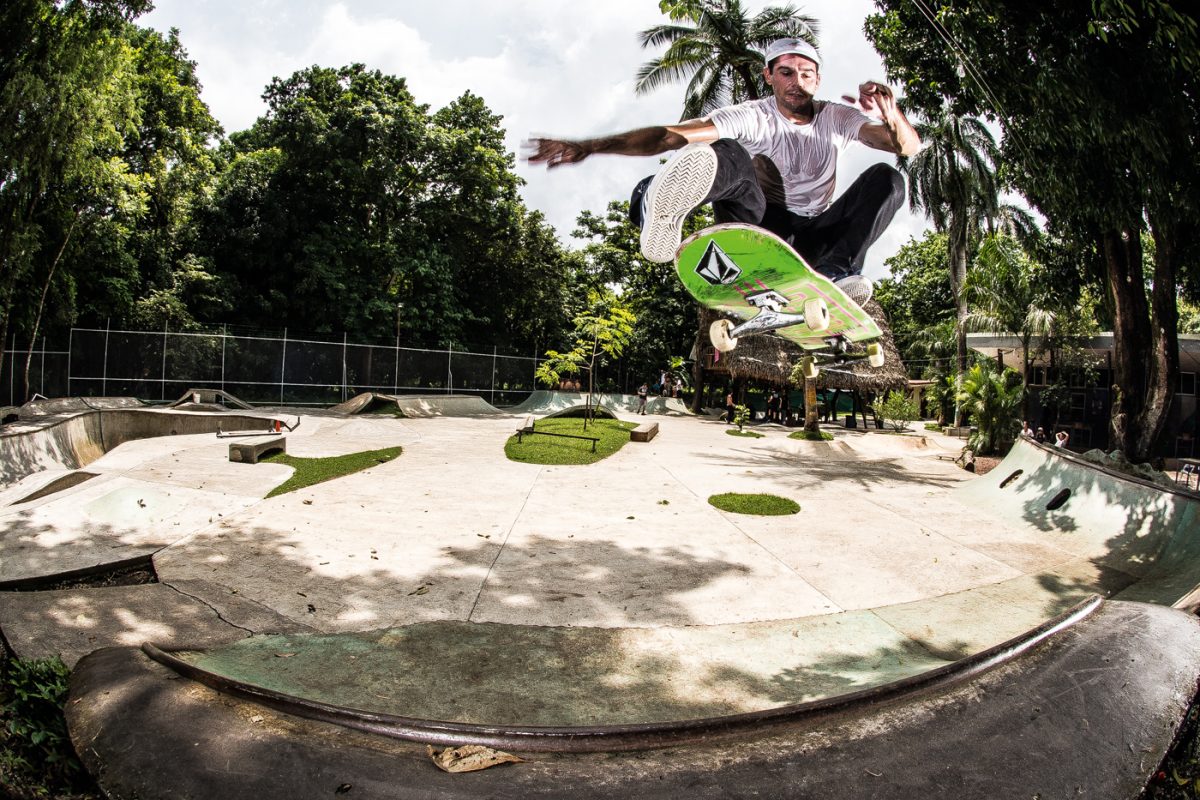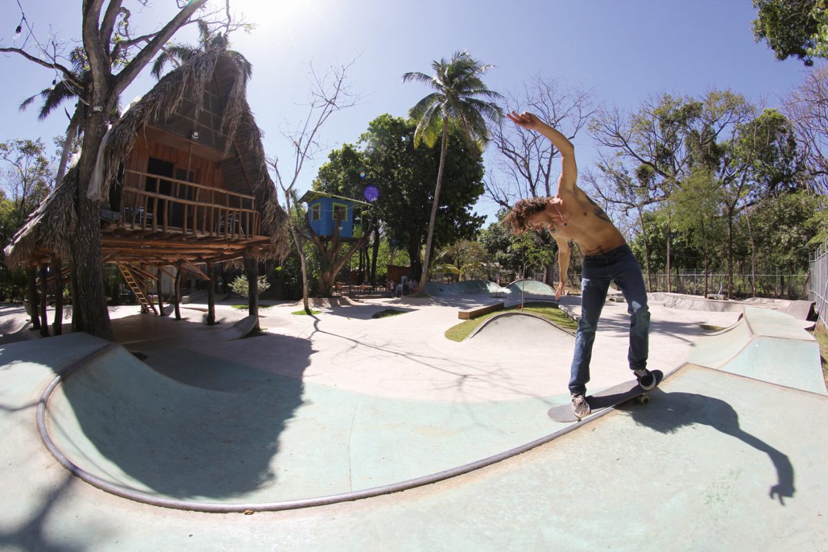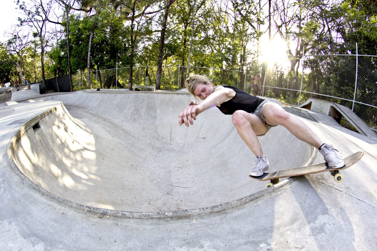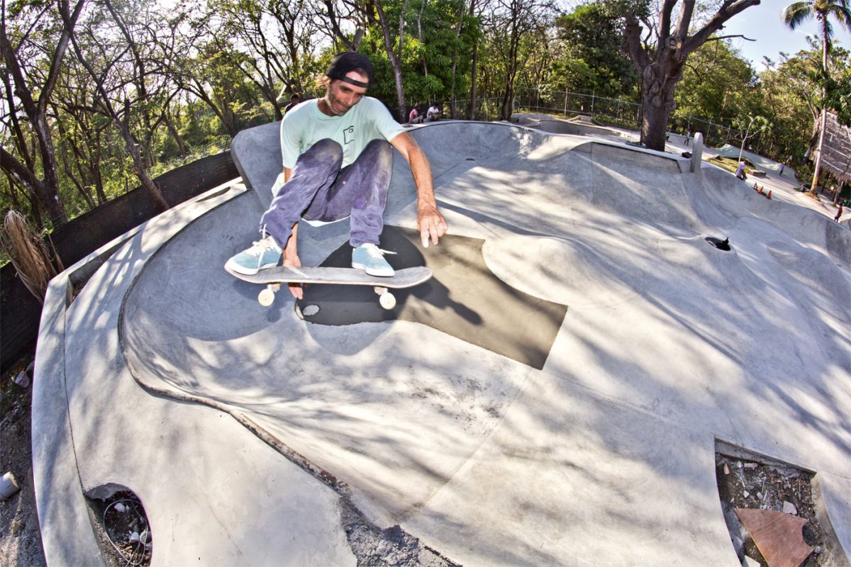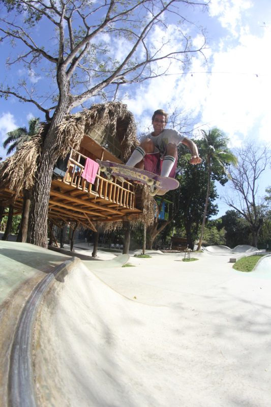 One hour away from Guiones there is El Mutante, a sick 700m2 skatepark that Kaleb Stevens and his friends built about eight years ago. It was Kaleb’s first skatepark and all D.I.Y. with five guys including Kaleb and one mixer.