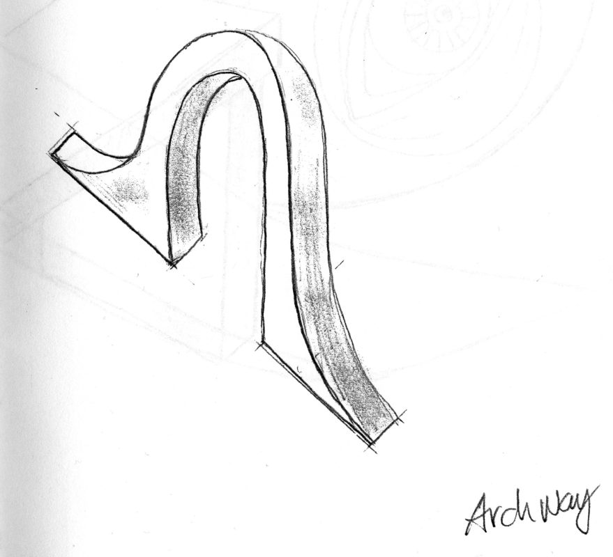 We started with five foot over-vert corner that ends in a wall ride going from one foot to five feet with a little love seat in the middle and we made the wood and metal work for the doorway.