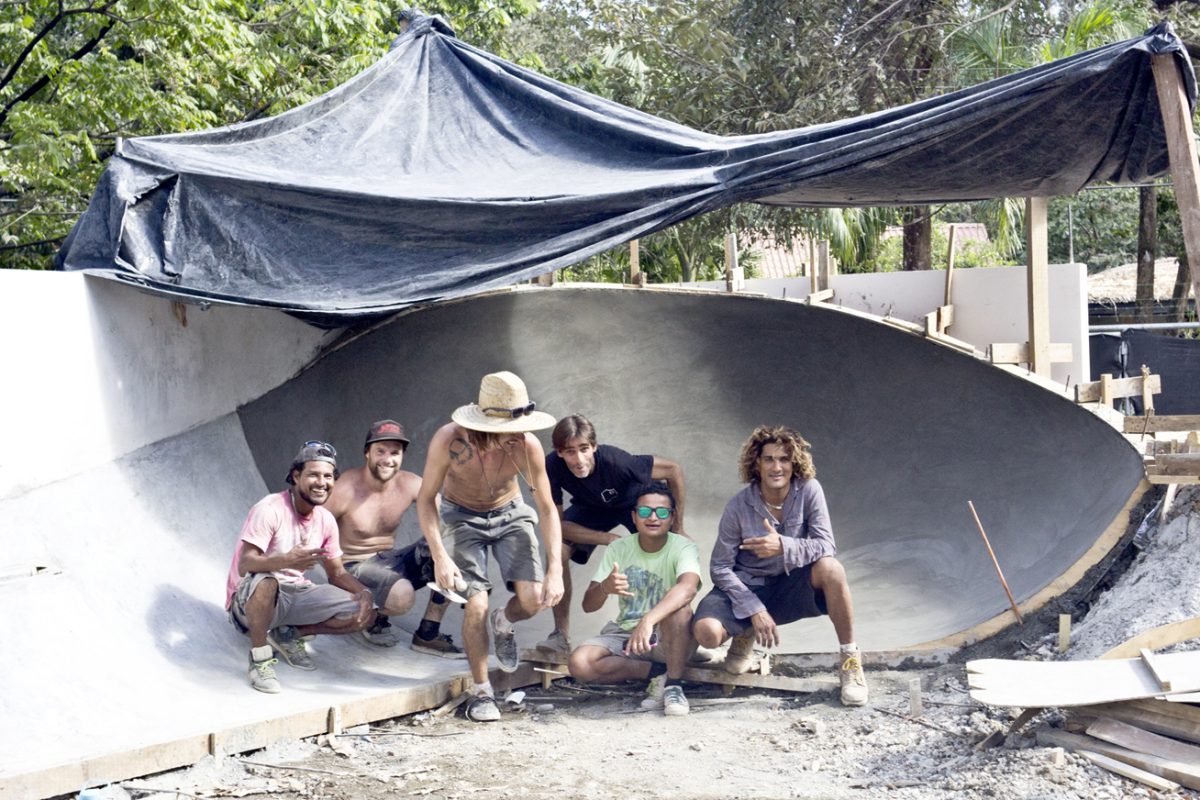 Jerry, a surfer from Esparza had a lot of experience in construction and Ale was in charge of getting the materials and everything else from the hardware store at the right time. Then also Tiharino and his brother – both from Guanacaste who mixed us the concrete and supported the good vibes and also Kien Mas, a skateboarder and graffiti artist from San Jose, Costa Rica, came to help out for a few weeks.