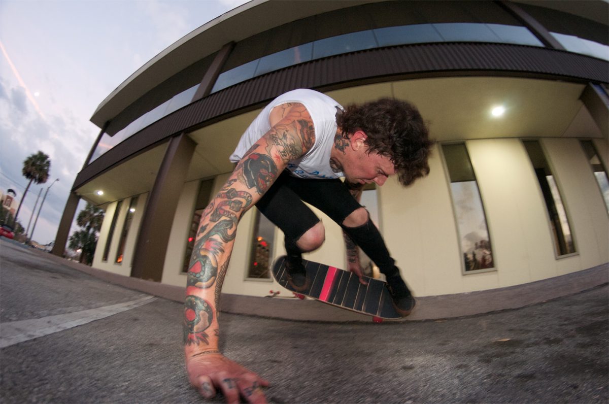 Greg Harbour skates for Plague Hardware, American Nomad, Speedlab Wheels, and Gullwing Trucks.