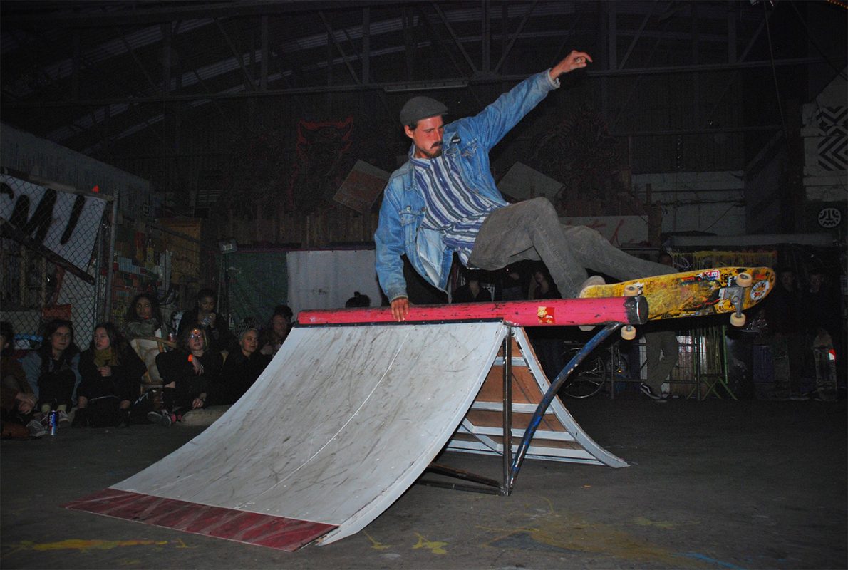 BARLOK is a musical and creative place with an outdoor bowl built by the Mashers; a small bowl with rad and fast transitions. The concerts were done indoor with awesome bands like Mr. Marcaille (Heavy Freak cello – BxHell), Hetouht (Impro stoner psych desert rock – Liege), Kill Martine (Experimental Metal Punk Noise – BxHell), Liquid Zenith (Special sert Experimental – BxHell), Just Tise League (Hip Hop Rap – Namur), Gura (Doom Experimental Jazz Fusion – Gand) and Bengal (Garage Rock – BxHell). In the afternoon the tricks went down on the contraptions.