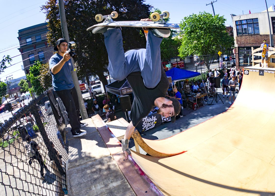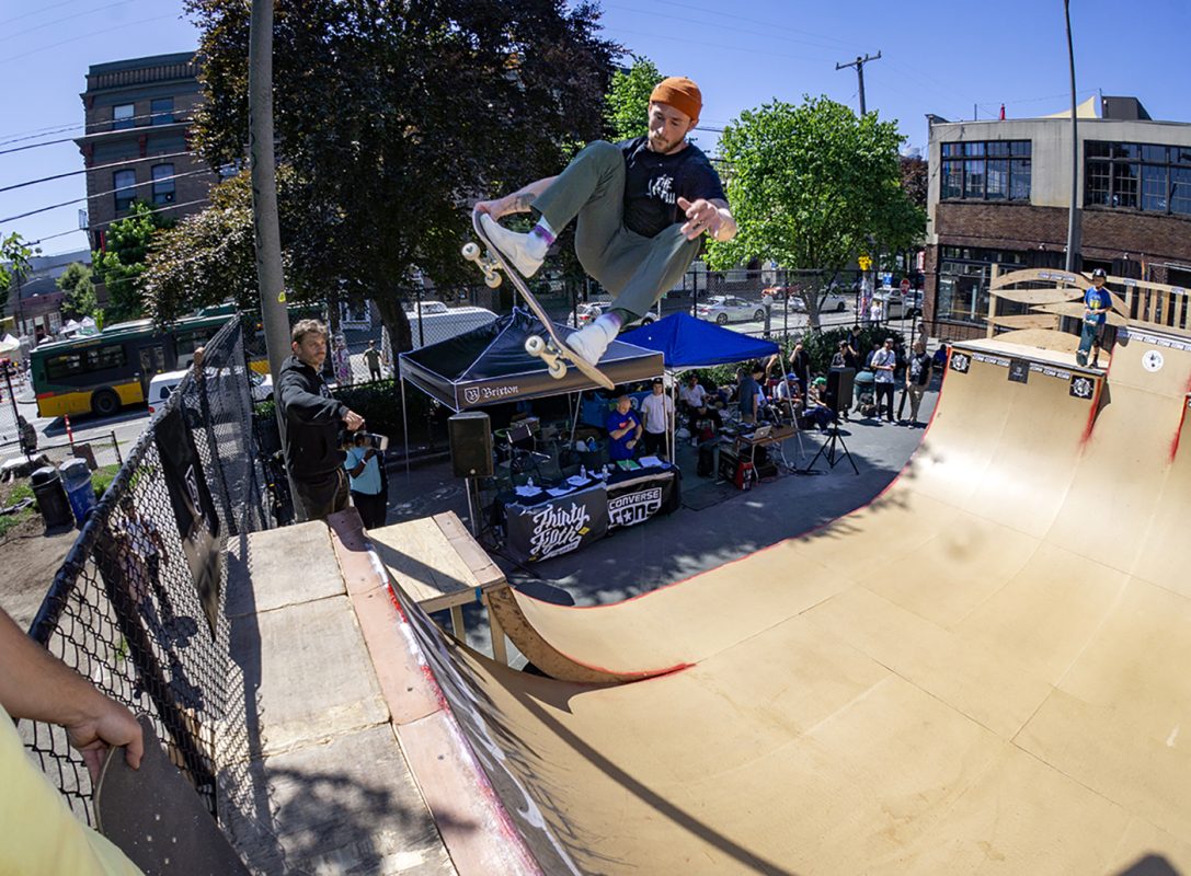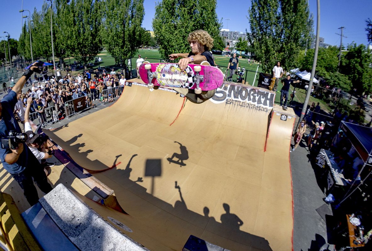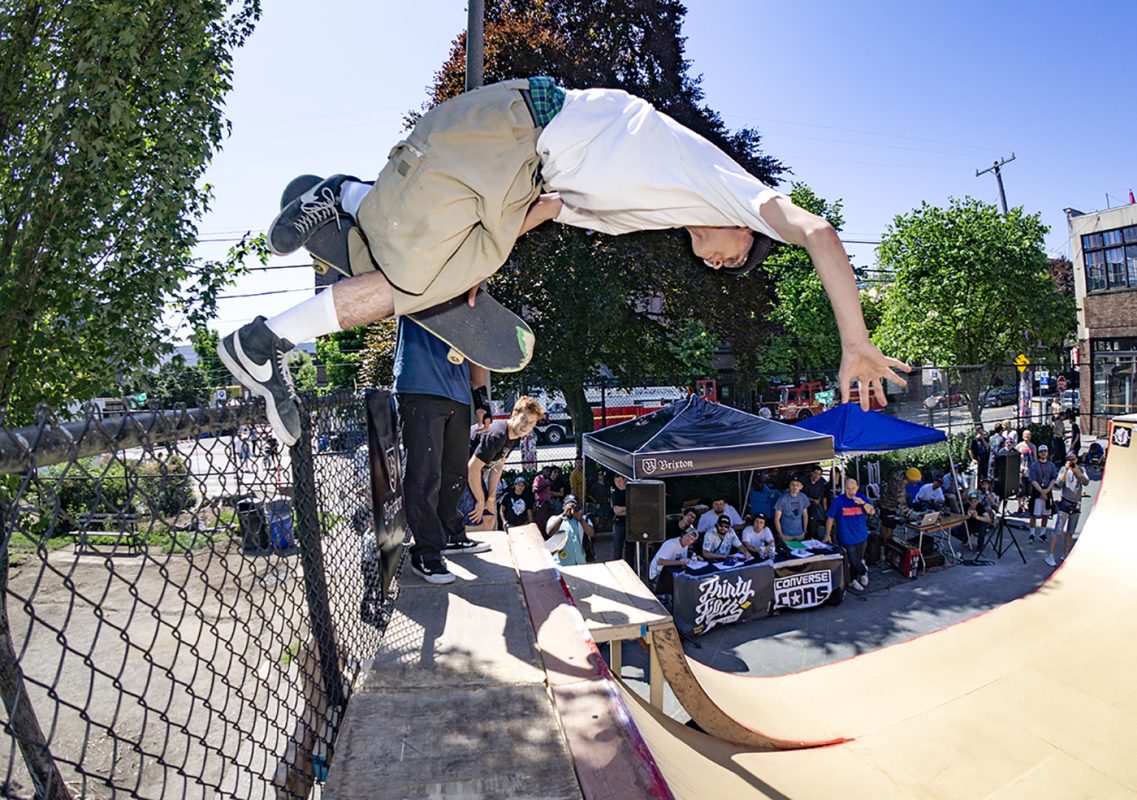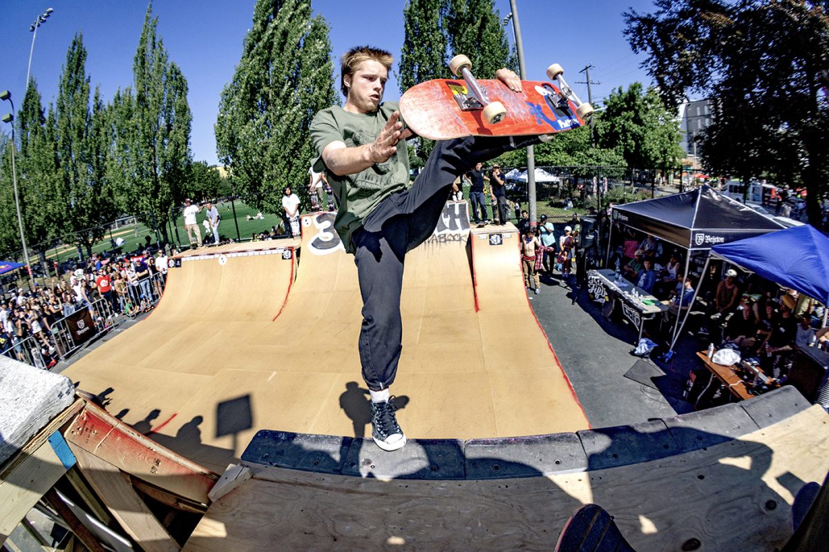 Battle at the Block was held on July 21st in Seattle, Washington at the Cal Anderson tennis courts in Capitol Hill. Running on its second year now, the contest consisted of a different mini/vert set up from last year, divisions were as follows: non-sponsored, the witching hour (girls-trans), 40+ old men and shredders (pro).