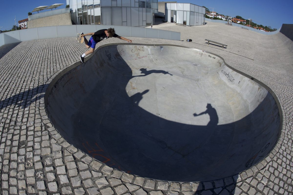 The first few days were spent picking up the crew, driving back and forth between Bilbao Airport, La Kantera, Zarautz and Sondika. On the third trip back to Bilbao airport we found out an already broken wristed Youngo couldn’t make his flight so we would have to pick him up at the airport along the way in Biarritz, where we stopped for a quick sweaty mid day session on the roof of the Ocean & Surf museum. Finally we had the full crew and skated a few parks including the Bayonne skatepark and Vieux Boucau and headed for an evening session at the Element Called Water skate / surf hostel close to Hossegor: a sunny place for shady people. We fit in well there with a session in the bowl til dark, bbq, beers and skated the mini ramp in the bar and called it a night.