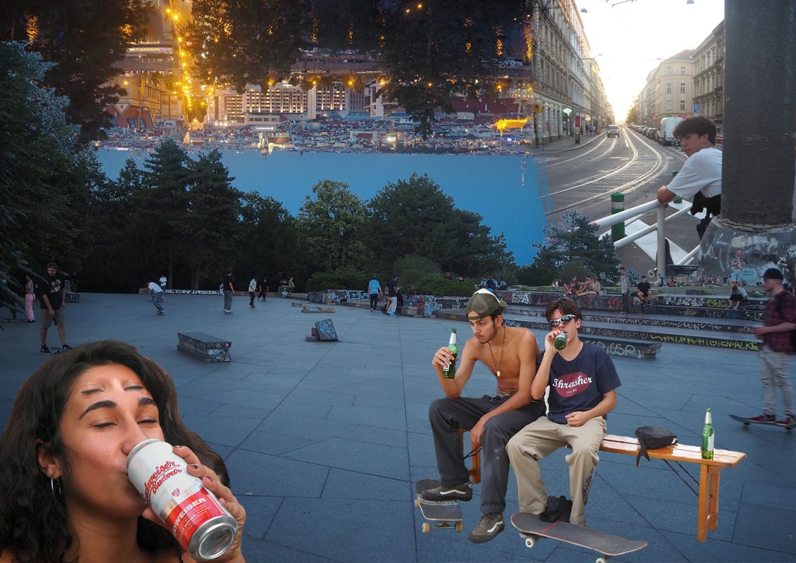The Hostel was located next to the Westbahnhof. After arriving and doing hostelstuff we went to Langefelder skatepark. Definatelly not the best park but fun obstacles and a nice miniramp. After that we went to a little skateplaza at the Neubaugürtel with perfect marmor ledges, good flatground and a wierd curbspine thingie, awesome spot and skateable all night.
