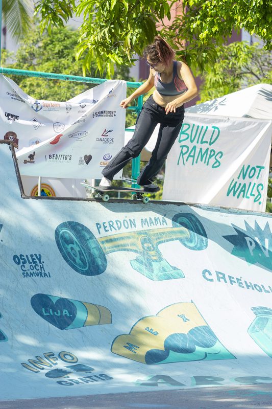 Women finals came around mid day , as heat levels started to rise this did not stop the girls taking the course as all the finalists were demonstrating their unique style from street technicians to the bowl/ transition slashers , this came to show that girls skateboarding in Mexico is alive and growing and it was definitely seen with a good turn out of riders for this contest.
