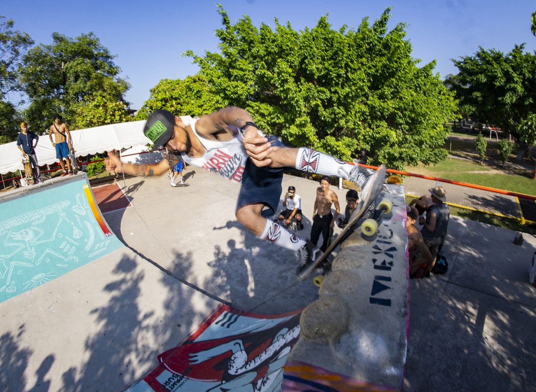 Puerto Vallarta is located on Mexico’s pacific coast in the state of Jalisco, within this resort town the local skate community celebrated this past December 6,7 and 8 the first DIY “Festival” a national contest that brought skaters from all parts of the country. The preexisting park “Parque del Estadio” was revamped with the help of locals, and sponsors like Build Ramps not Walls making it a mix of street and tranny of different dimensions and new pool coping on some parts.
