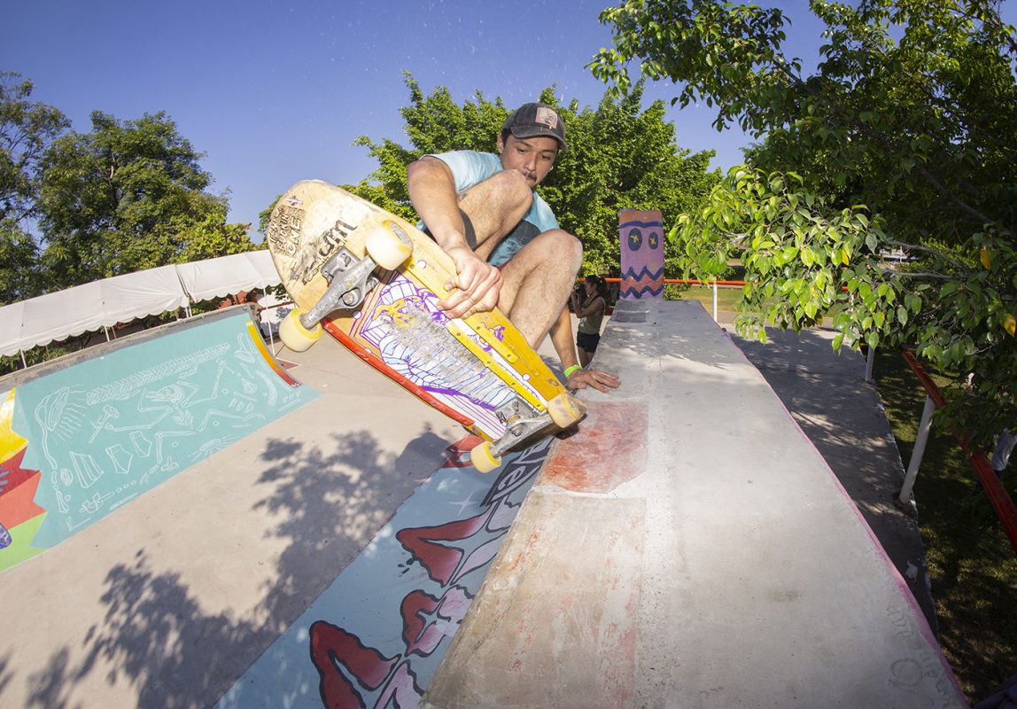 On Friday the Amigo’s of Skate Crime Skateboards had the Crime at the Ramp mini ramp jam which kicked of the festivities for the coming weekend , locals had the upper hand on the lines but the new coping and river rock stones on the Skull extension was a challenge which only brought more energy and stoke to the jam ,