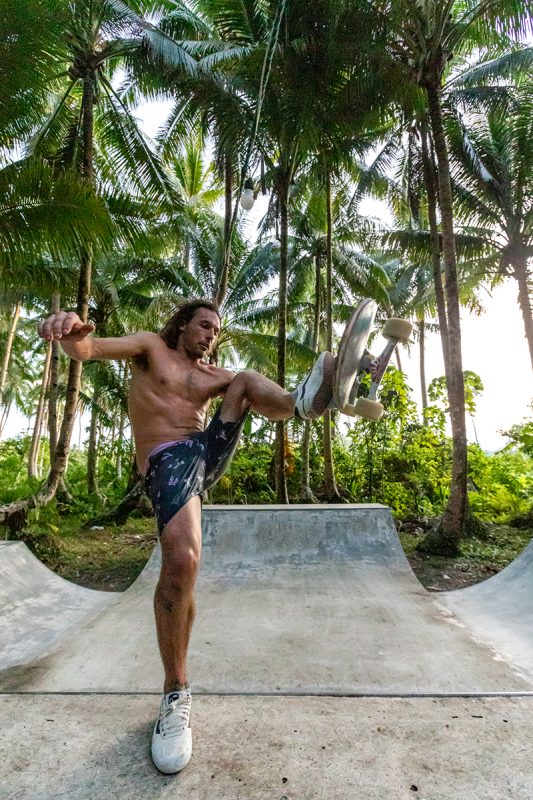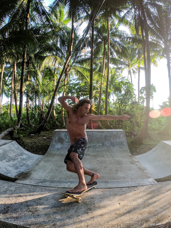 This miniramp is actually a DIY built by Hans Askvid for his kids in this small village in front of the beach where they live with their mom Grace Suarez, a really nice and super friendly family. At their accomodation you can skate, surf and drink coconut water all day, what else could you want?!