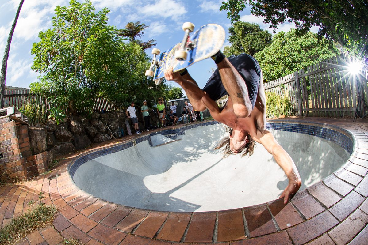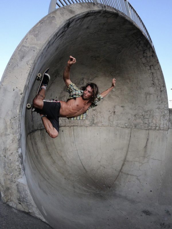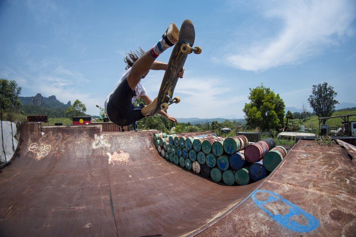 Frontside grind off the lip at EatSleepSkate in Bali. Photo: by Icaro NardiLayback in Nimbin, NSW, Australia. Photo: Simone FerreriAle getting barreled in barrel in Siargao, Philippines