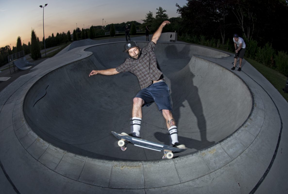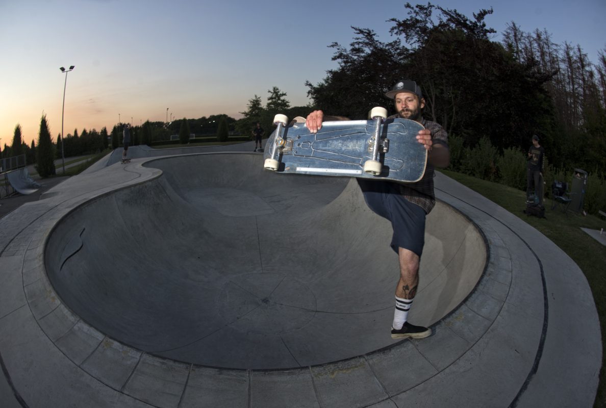 “The Put is a bowl in Opglabbeek, Belgium. It was built by Concrete Dreams in 2017. Before the Put there was only a crappy 90’s metal Half pipe, with some quarters and stuff. The half pipe was really fun though. The local skaters of Opglabbeek really wanted a decent concrete park. So they started asking the town. But there wasn’t any money for a skatepark, they said. So some of the locals PJ, Gaspar, Jesse, Dirk and Kevin Grubler started a non profit organization to organize events, mainly to raise money for a concrete park but also to show the town that we were serious about it and that the scene really needed a park. After organzing four of the Game Of Skate event and two editions of the bowlc ontest PutSkate its clear the scene is alive and kickin’. The Put is now a well known bowl in the Benelux. Lots of people from all over have come to shred it and have a good time! The Shredderlo crew is a crew of locals from Limburg who like poolcoping, lots of beer, Black Metal, BBQ and Good Party!” – Kevin Grubler and Dennis Gaspar Mateus