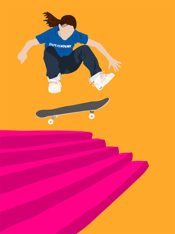 I really don’t know what should inspire others, but my skating friends inspire me and give me power, courage and self-improvement. That|s where the idea of GIRLS TO THE FRONT illustrations came from.
