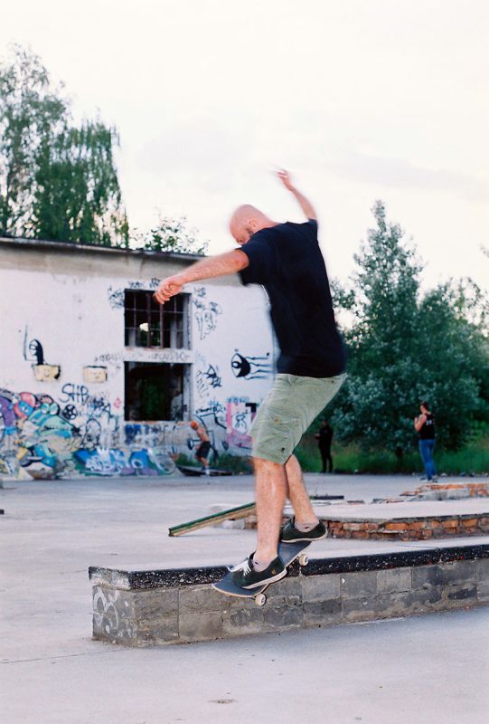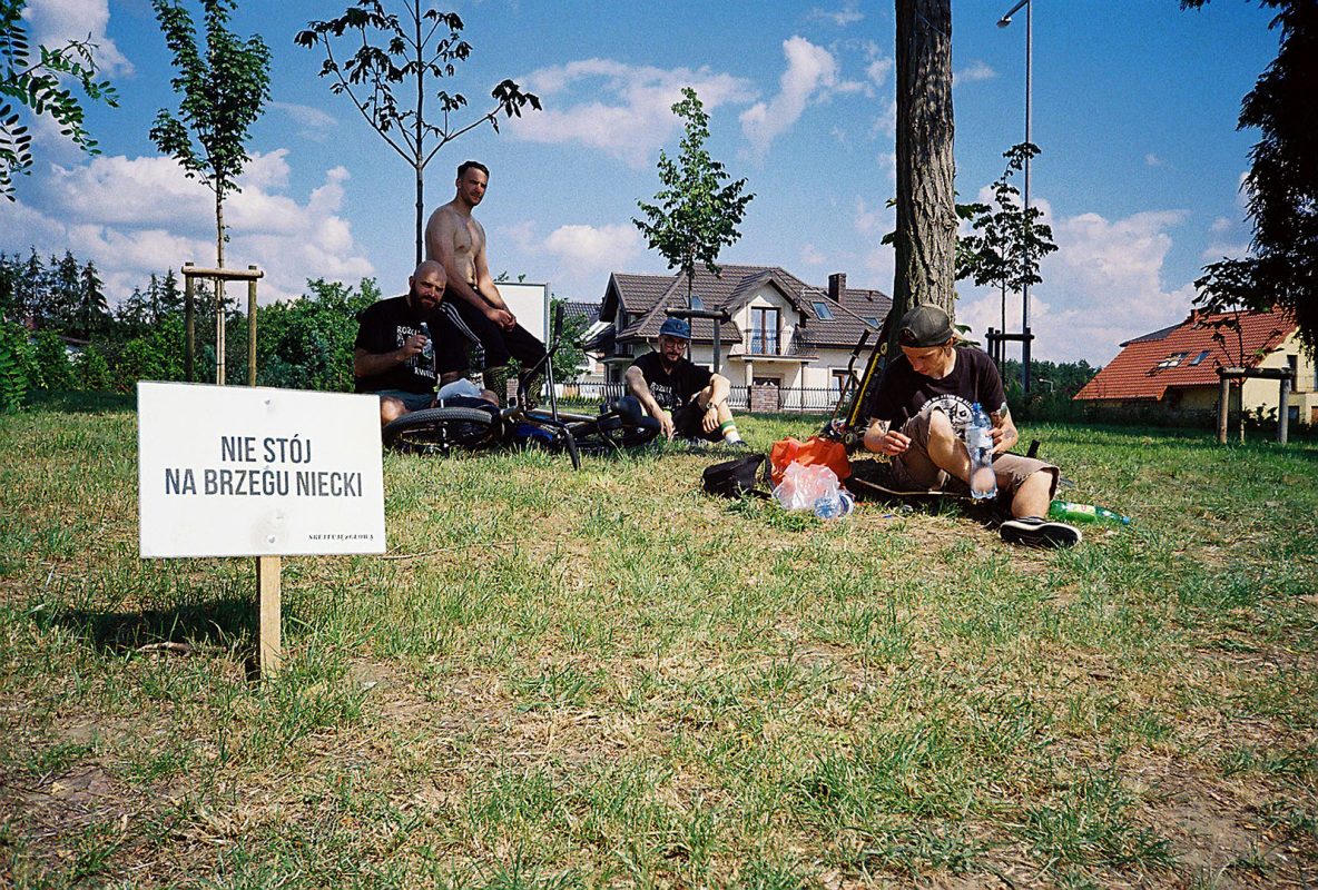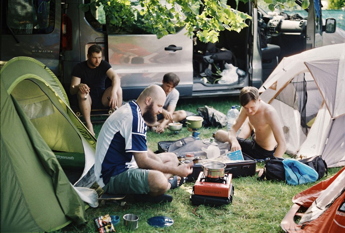 Classic morning meet-up. Emotional storm and fight for the best seats in the bus. 9 guys in a 9-seater bus? Let me tell you boy! It can get intense. But definitely funny. After short warm-up at skatepark in Koziegłowy, we hit to Poznań’s diy skate spot Cegielnia. I arranged a meeting with Szrot’s good friend Mateusz Gmys – alien, freak and owner of best skateboards’ manufacturer Nibiru Skateboards! Cegielnia was on fire that day! Szrot x Nibiru collabo session. That was a proper start of the tour. In the evening after a few Specjals (the finest polish beer), handshakes and hugs, we left for the first night of our tent city. Cegielna was probably one of the best spots of that trip.