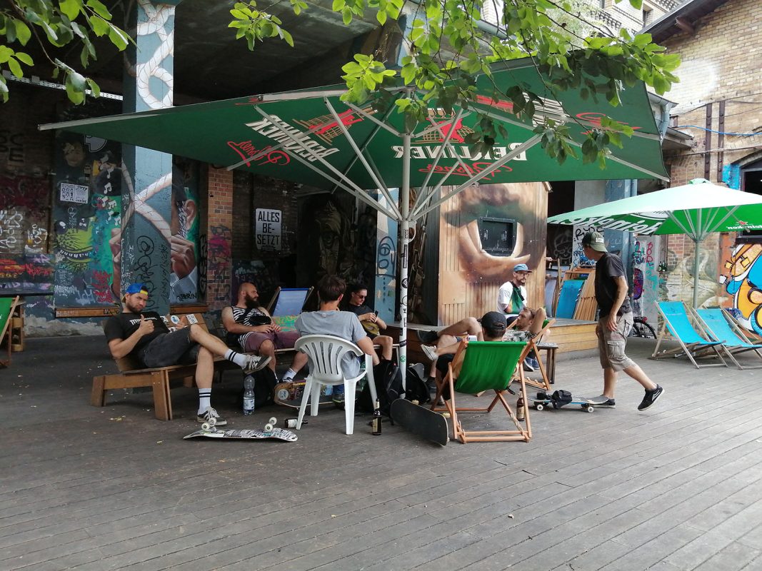 Our plan was to visit one park in Slovakia, get back to Katowice, Poland and then skate a few other skateparks in Poland. The plan was changed. Again. We made a decision to go to Berlin! Currywurst, Pilsator beer and club mate made our decision easy to make. First day in Germany we decided to spend at Mellow park. Last time I was there a few years ago so I was excited. To my disappointment we found a pretty destroyed skatepark over there… Wooden park was falling apart, there were more holes then actual flat on the ramp and inside the diy bowl there were tables… What the fuck happened? I spent three euros on that! But no worries. I collected bottles, so in the end, I earned a few euros.