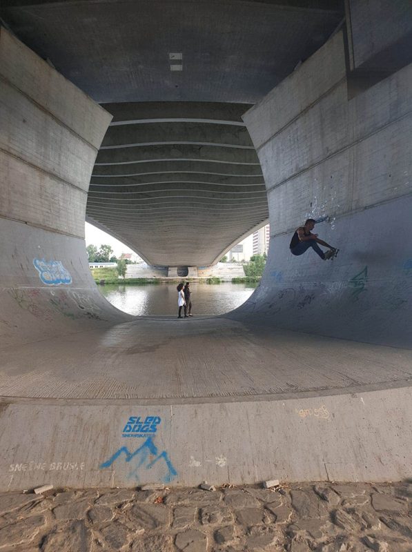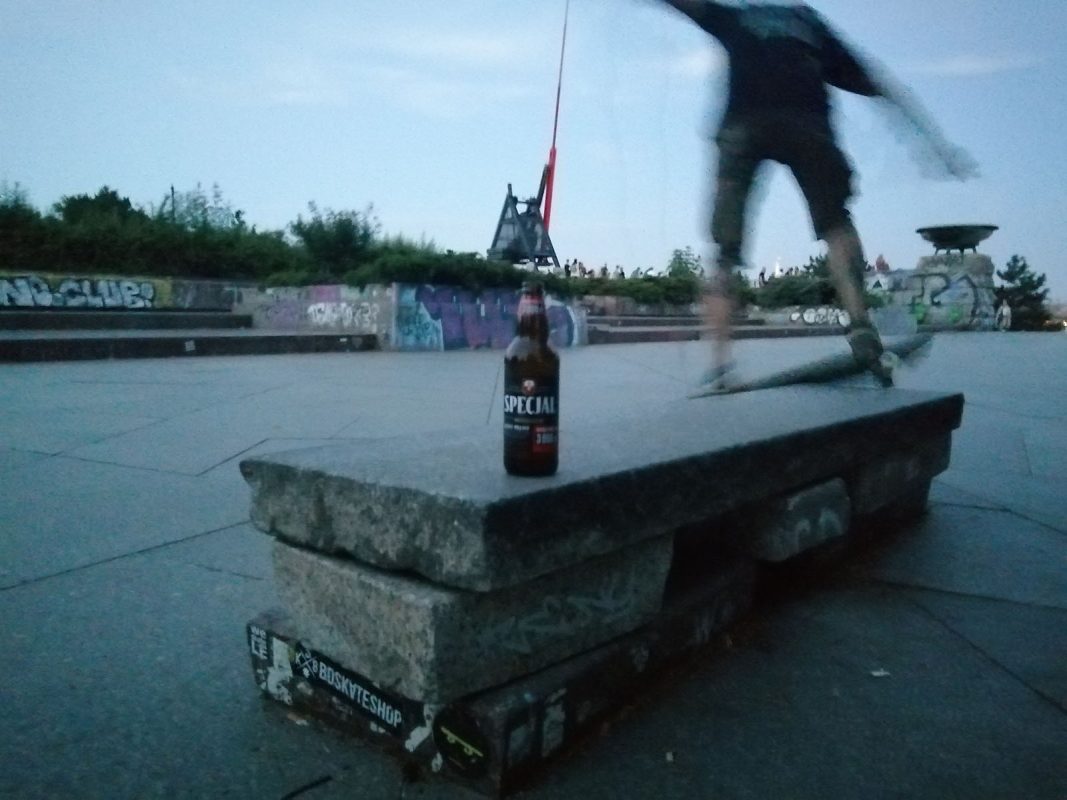 Next day was a time to leave our homeland and visit friends in Czech Republic. Prague was our first destination. “Do you want to check some halfpipe under the bridge?” Strejli asked. First thought? Some metal ramp covert with dirt and homeless bums? You can’t be more wrong. That “ramp” was part of the bridge. Natural spot. Probably one of the best spots of that trip. Just riding up and down was fun. No tricks needed. Tricks are for kids. Unfortunately one of our biggest players – Drew lost control and fucked his elbow. Damn Drew! How dare you! After that we went to Stalin. Session till it gets dark on Stalin plaza is always a great idea to finish the day in Prague.