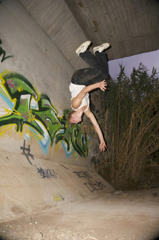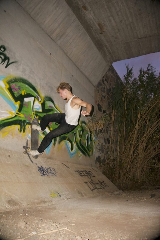 David, who just arrived on the island two days before and originally was not on our radar, because nobody knew him, was at home and we asked him to join our session. In the end HE sessioned and fucking destroyed the barranco spot!!! He tried sooooooooo hard (about 90 times) to stall a blunt to fakie. The best thing is, David did not even knew what a “blunt” was. He just speed freaked up the bank, banged against the wall & popped back *BANG*!