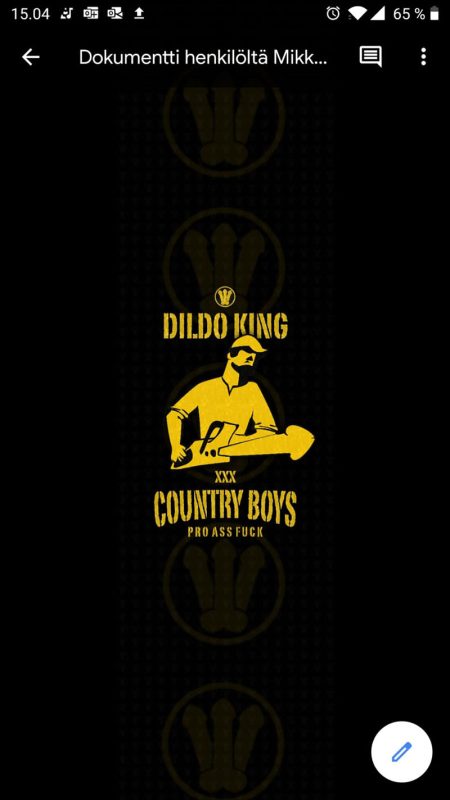 Eero: “Kymis had an idea of some kind of crossed chainsaws but my idea was to create something better.. logo from the “real countryboy with a chainsaw”…. But for the dildoking’s graphic the “country boy” would hold the “MOTOR DILDO” instead of a chainsaw.”