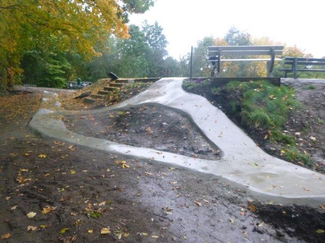 Sections of the pump track that goes around the whole park