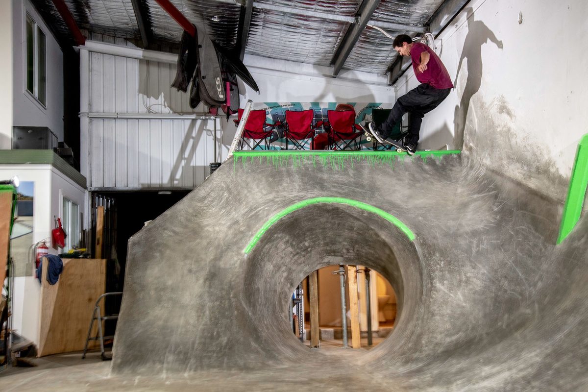 I rocked up to a dark unlit street in an area I had never been, but you could feel the atmosphere pumping from the roller door of Truckstop skate shop as I walked up. The scaff had been set up outside with a high-speed roll in to the vortex and a line of rippers itching to hit it. It was heated and the vibe felt like a cage match with the sound of the tunes and everyone cranking warp speed down the scaff to the new feature, it was on!