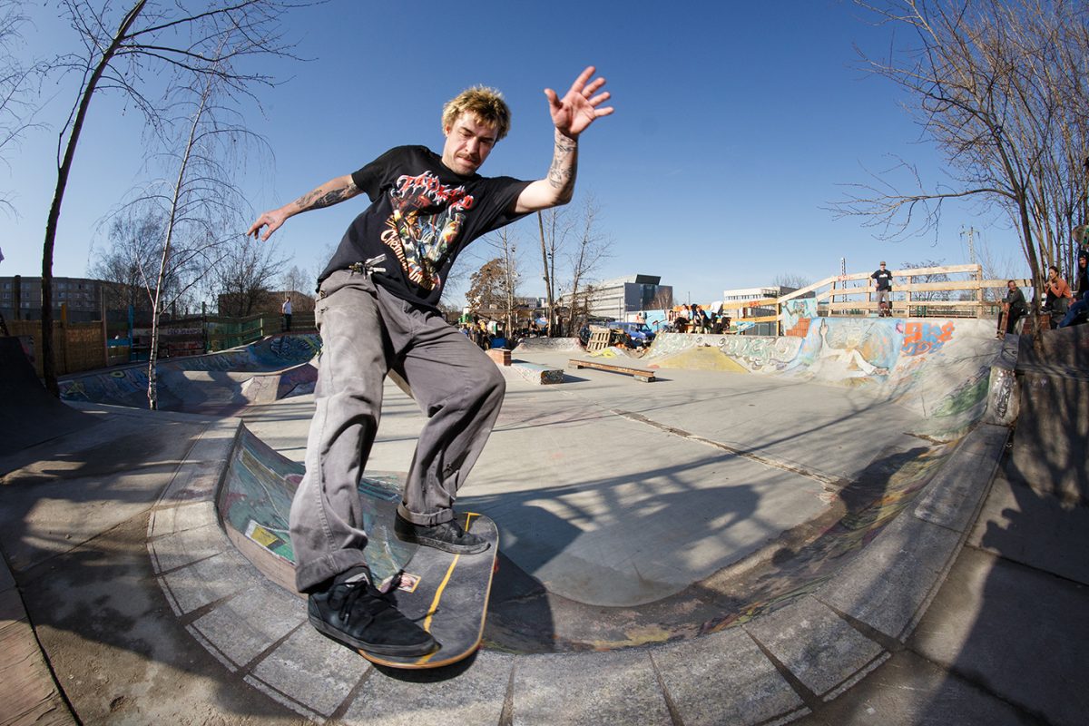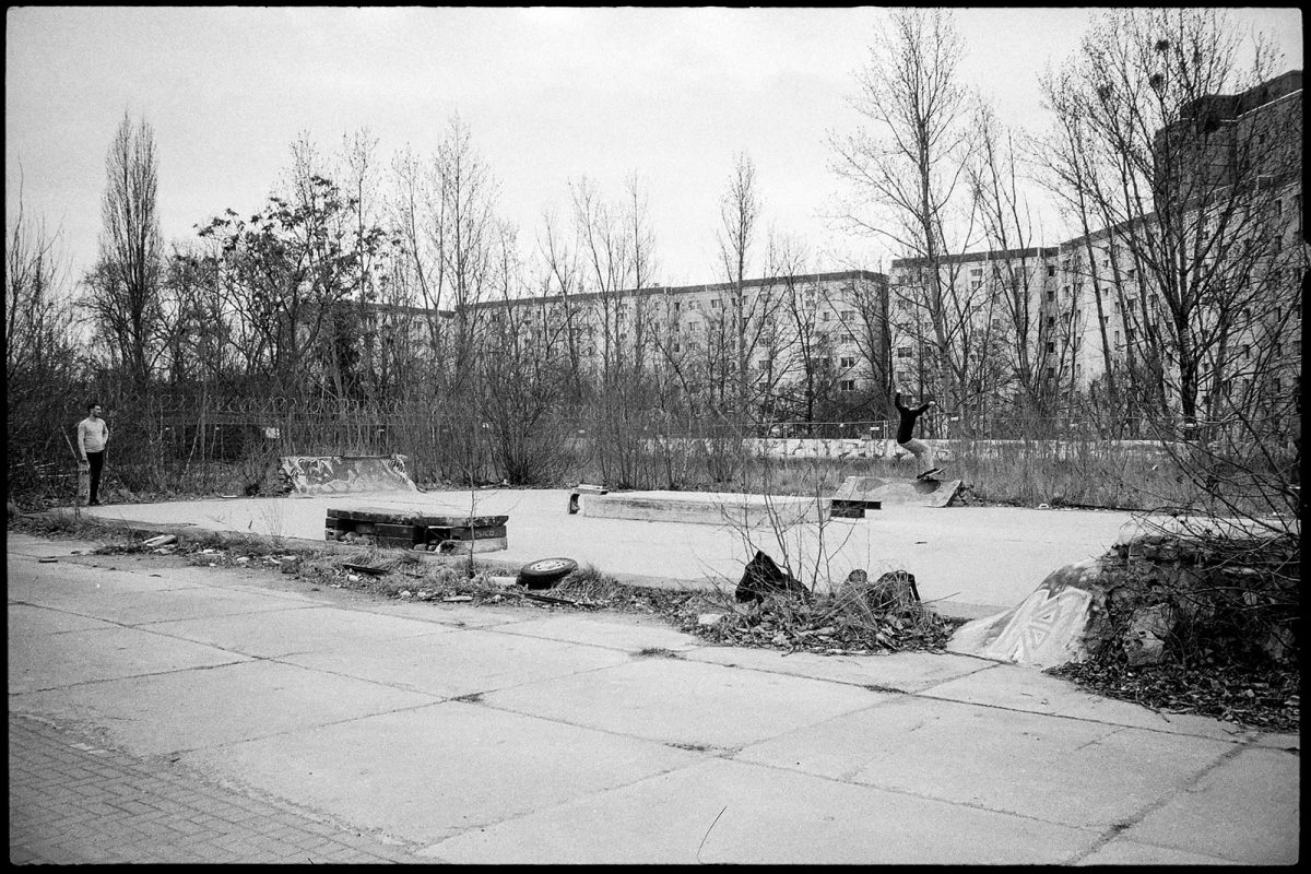 Finding a name for the spot was one of the most unpleasent and unimportant jobs on the list. To make things short, you could say the spot is called “Greifswalder D.I.Y.” because it’s right next to the train station “Greifswalder Allee”, more or less in the center of Berlin. Telling when the build began is hard to say, because different people already built one or two ramps eight years ago. The property was hard to enter back in the day, and word was it that the whole place was about to be torn down very soon. So there was no regular building happening until three years ago, when the Müsli-Gang und the Shake-Pfand guys put their heads together and decided to start building ramps at the spot. Since then, a lot of things changed on this precious property because the guy that owns the place made it more open for the people by tearing down the fence and getting different parties to rent out certain parts of it. One of these parties is a collective of people running a subcultural place containing a techno club, art exhibitions, a circus and a lot of other awesome stuff. They helped us out a lot, which formed a big friendship between these different parties. Anyway, the landlord didn’t open the place for us on purpose, we we’re just an unpleasant side product that developed without him really recognizing. Now he has obviously recognized, and still tolerates the skaters, not without making things difficult for us, but this is another story.