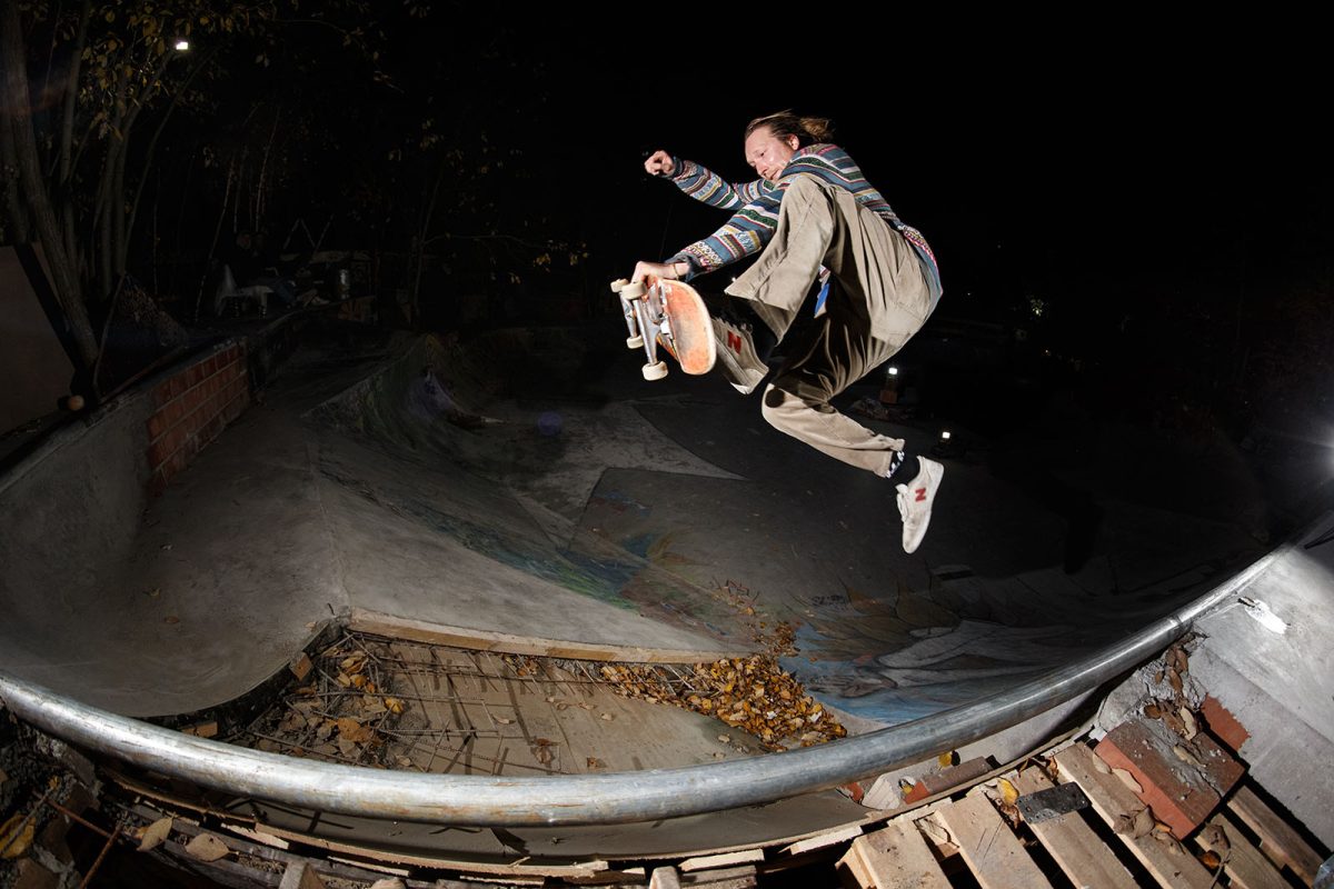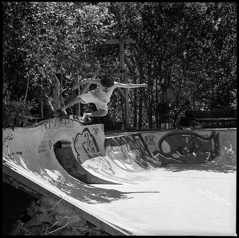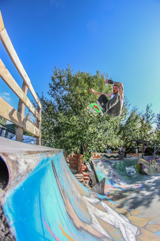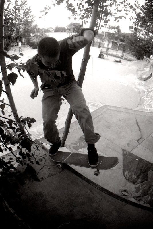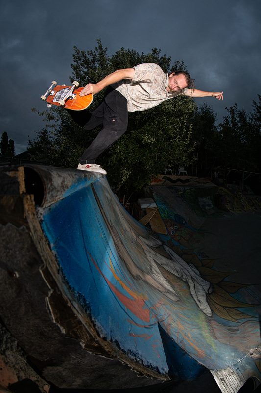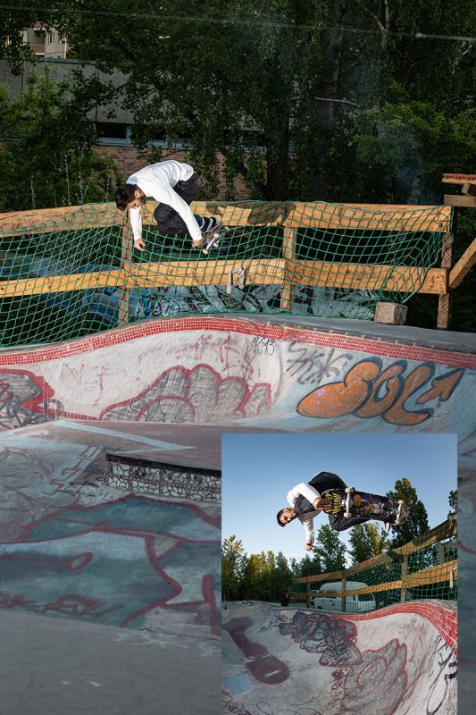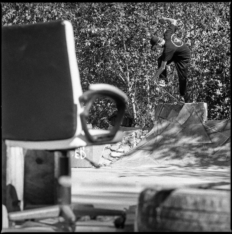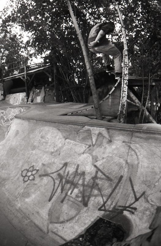 The pool coping is home-made but we also have granite copings, only god knows where they are coming from. And yes, besides the stone copings we have a few metal-coping sections. I think it’s because the people that build the park like to skate different things and we always try to make everybody happy. Fuck Nazi-skating and people that think this and that is better to skate, we just do it for the fun of it. Also there’s the manual aspect of trying diffirent things.
