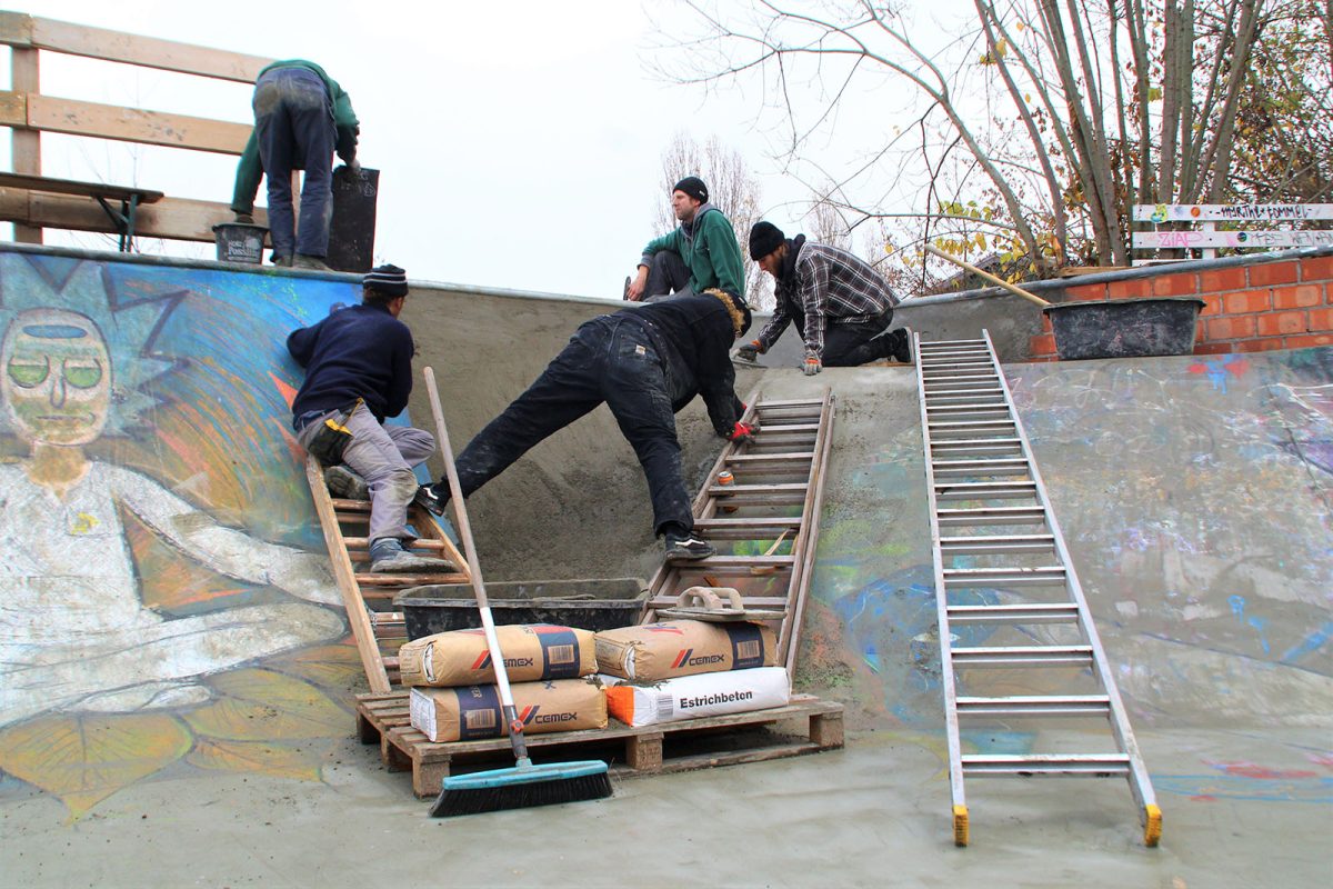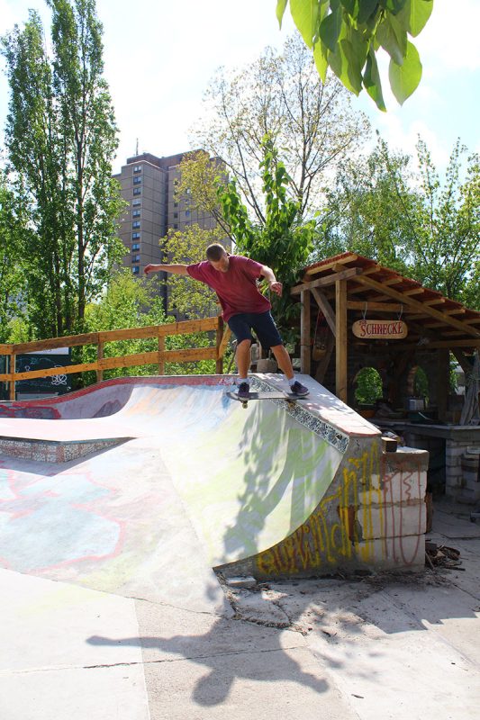 By now it’s still the Müslis and the Shake Pfand guys keeping it up, with a lot of support from people all over the Berlin skate scene. We have an official “club” by now which tries to connect building and skating with the social claim all around skateboarding which means that we do skate courses for the young ones, have pizza parties and BBQs, urban gardening, ping-pong and whatever it takes to show the world that skateboarding is not only about rolling but also about making the city a better place for young and old.