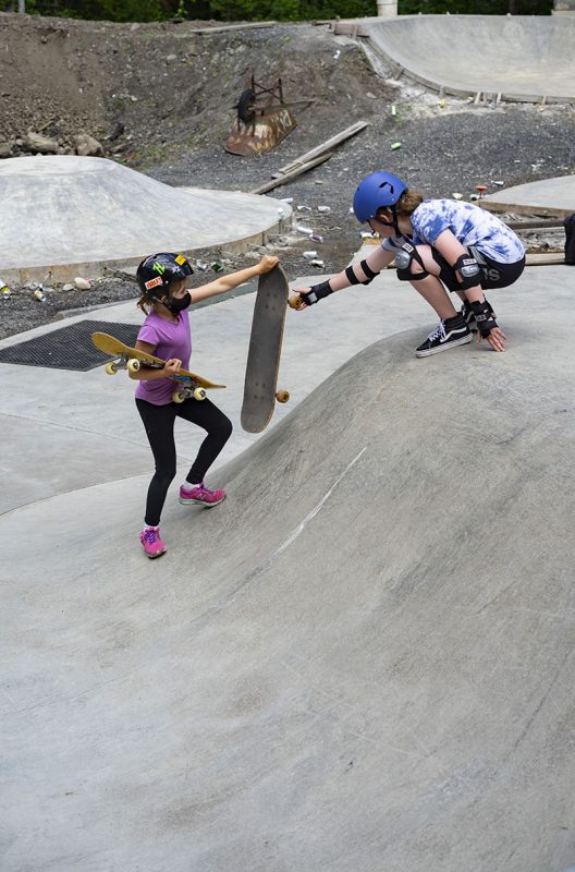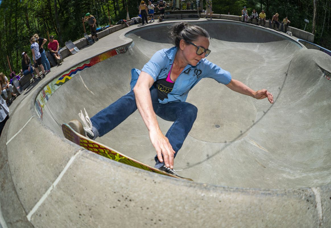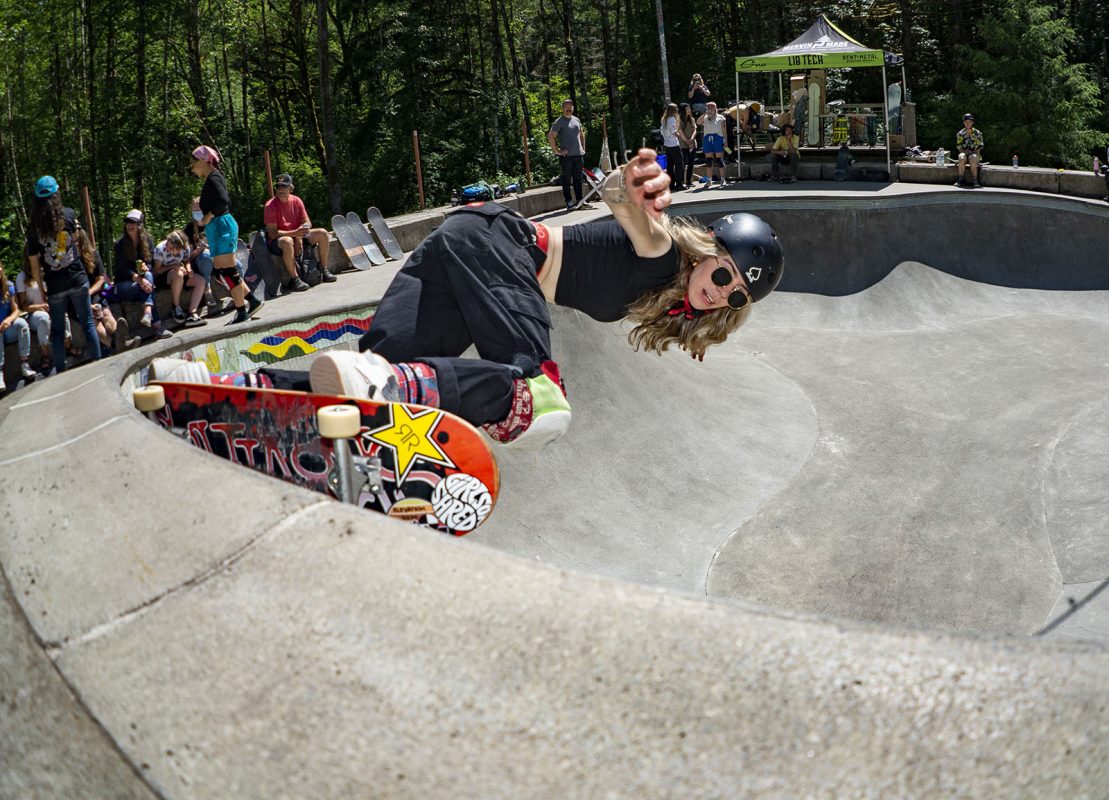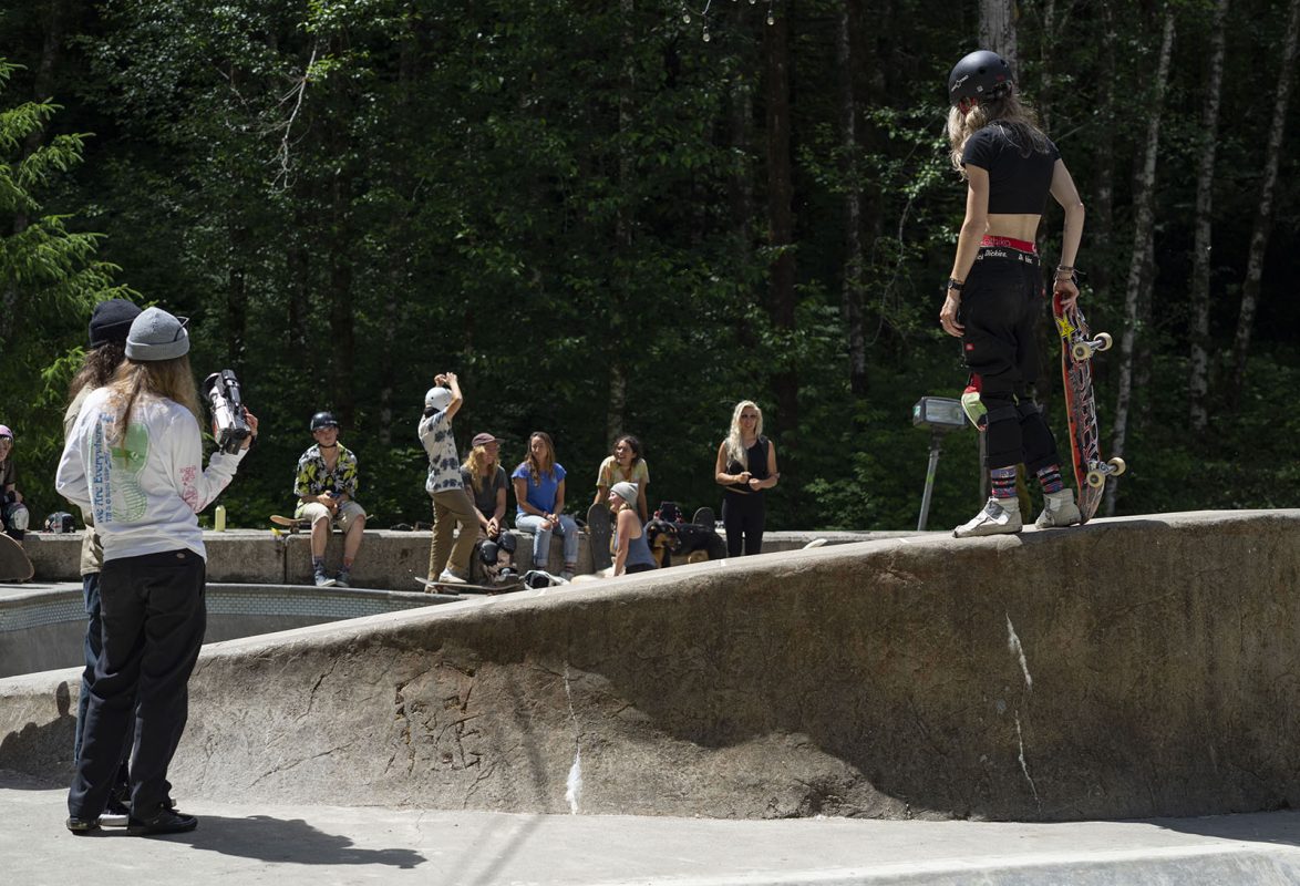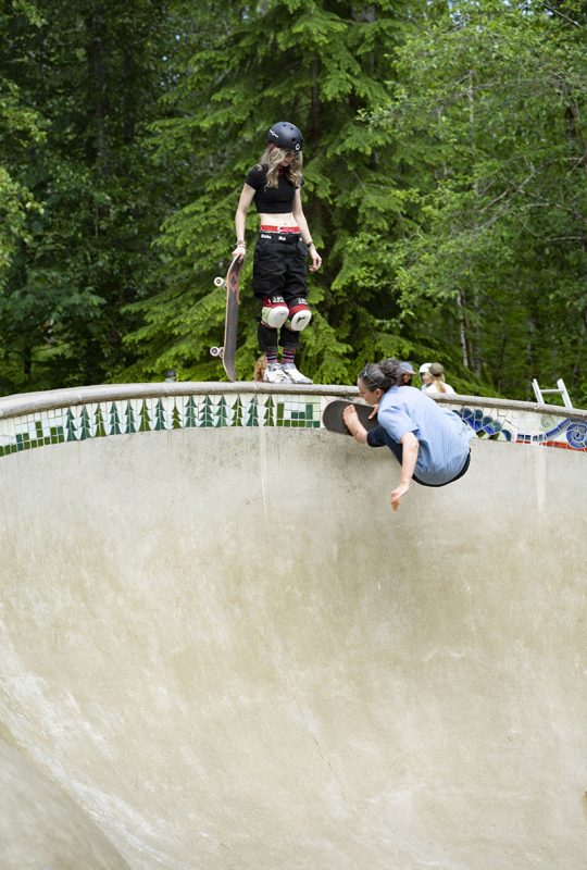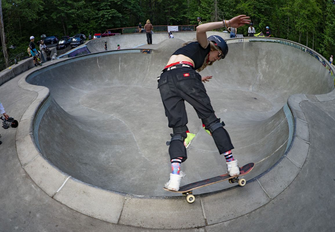 After more than a year of not being able to have any gatherings and going thru lockdowns here and there, it looks like times are getting a bit better and on June 12th Montana based “Girls on shred” hosted their first women’s / non binary skate clinic in Washington state at the Coal pad DIY in the town of Glacier, but any one was welcome to come borrow a board and gear and start rollin around in this concrete wonderland located in the middle of Forest, Locals and folks that came from afar skated the different parts of the park that has sections for beginners and other parts that are a challenge even for the seasoned shredder, all in a day of sun and fun for better days to come.