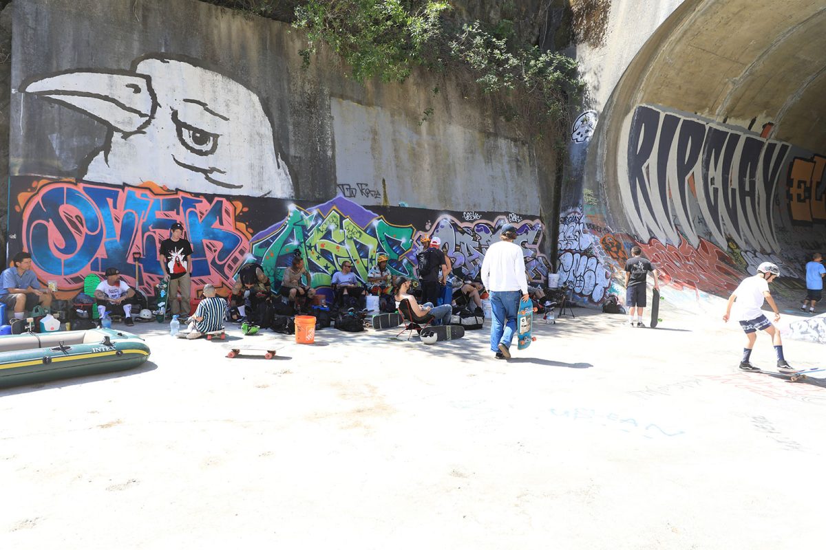 On Saturday we all hit the parking lot around 8:30 am and once again made the trek to the raft area, and made our way across. By the time the NMEN crew started showing up Casey, Rodney and the kids, and I had the pipe dry and Ali was in full swing taking photos. The people just kept showing up! It was such an amazing experience to be able to skate my favorite spot in the whole world with other people who feel the same way. I think on this day over 50 heads showed up to hang out, have fun, and shred.