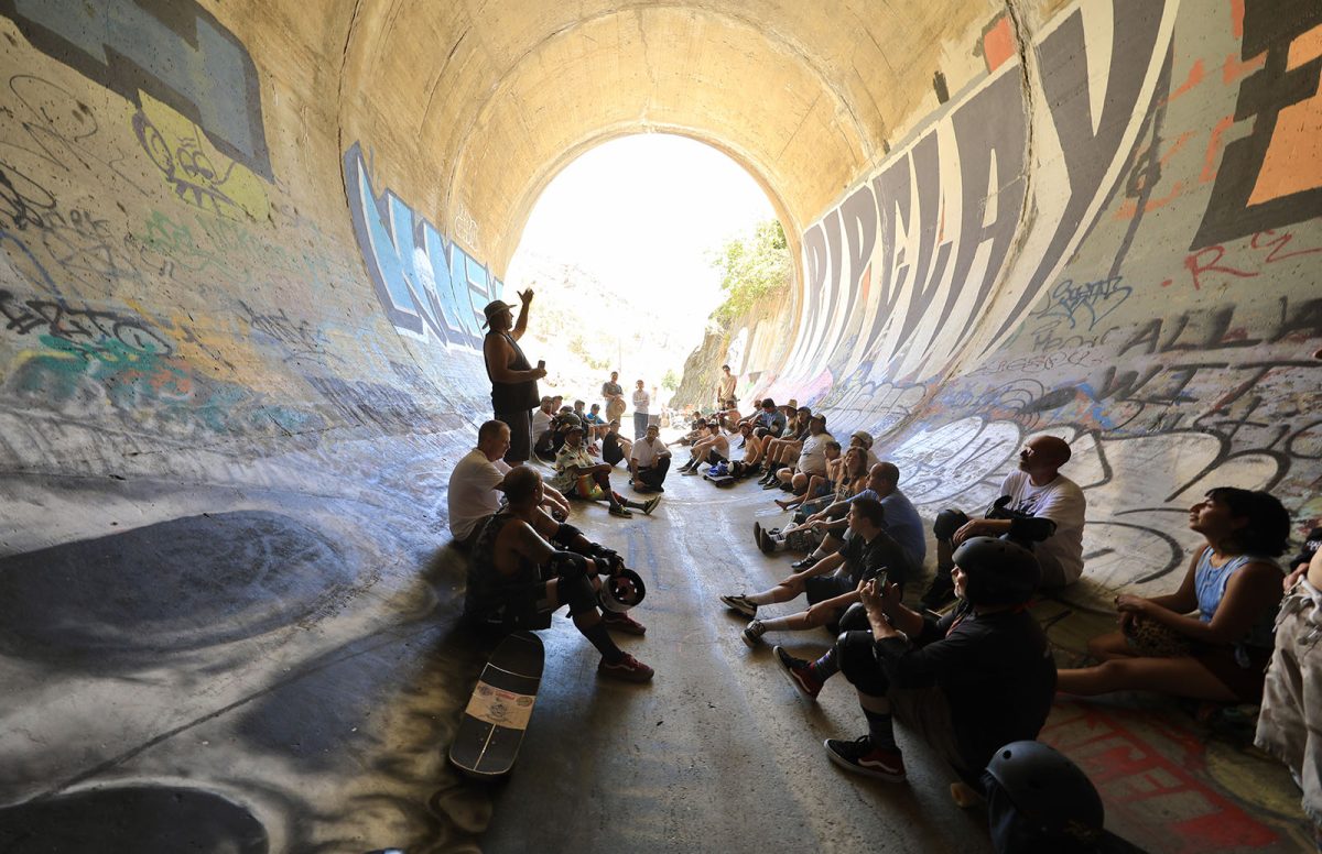 I would have to say the highlight of the trip for me was listening to Steve Brockway give us his history with old glory. He started skating it in July of 1976, and his first trip was a hike in which is by far the most dangerous way to do it. They had open bearing wheels and were human sling shoting each other to get enough speed to ride the 14.4’ transitions. Word on the street is that Ray Flores and John Malvino where the first ones to ever get in there and ride, and I believe they have the footage to back it up.