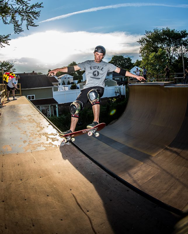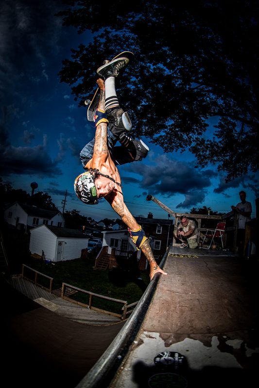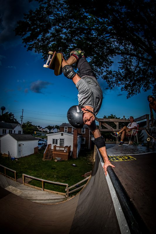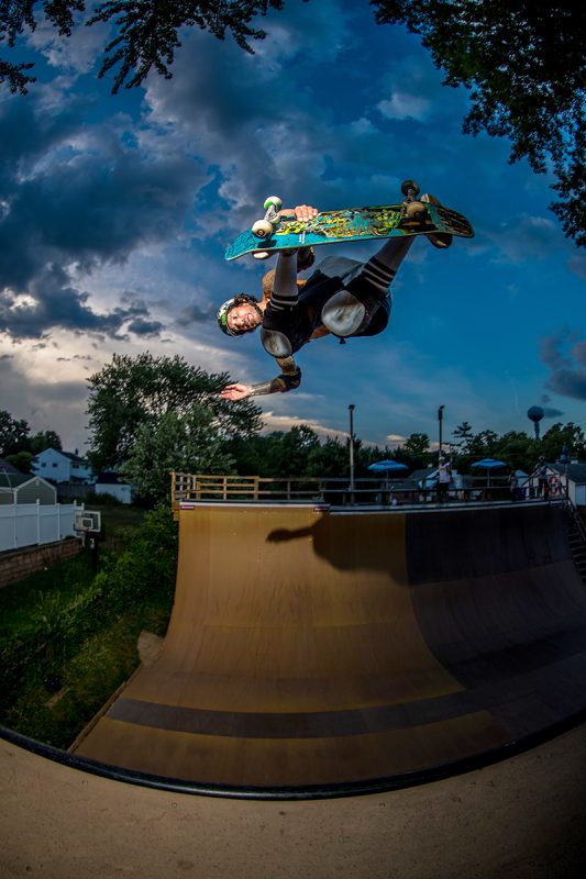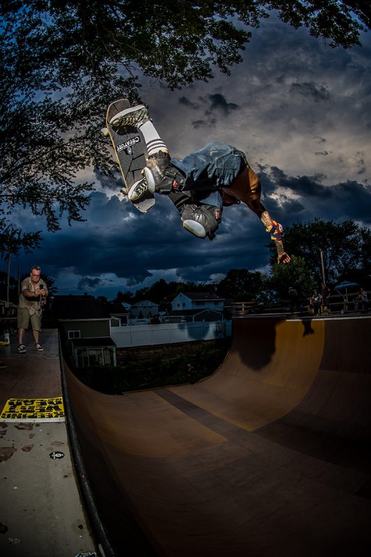 “MidAtlantic summers bring extremely humid 97 degree temps with frequent storms that can kill a session and for whatever reason, visitors from all over. Our summer weather sucks balls but that is out “skate season” and we live it. I sometimes hope it rains to keep me from swamp ass, but most times, the sessions go on.” – Derek Krasauks