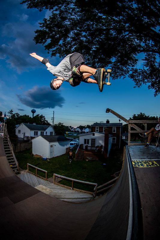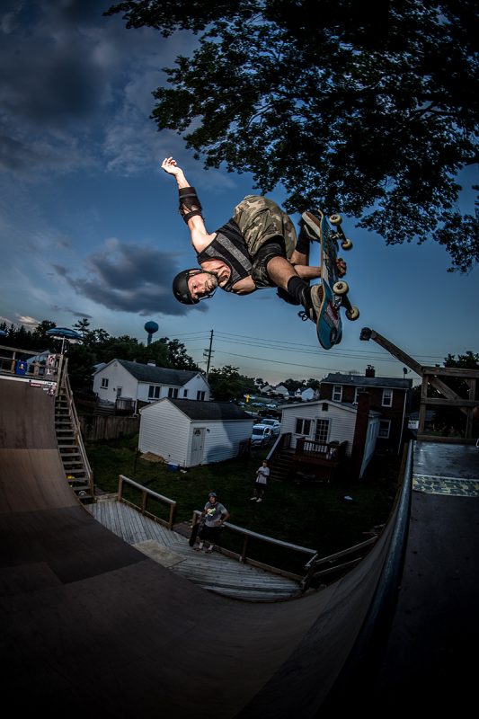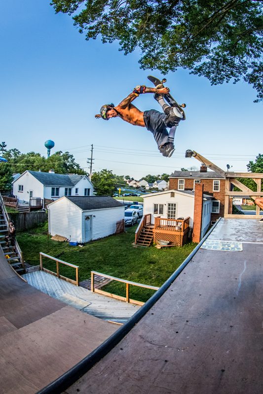 Backyard vert session in Maryland on a 100f degree day with Darren Navarrette, Derek Krasauks, Jay Stevenson, Carlos Naffziger-Brown and Mark Pfieffer.