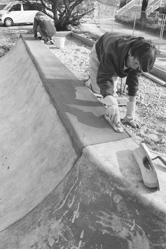 After the city just offered replacements at other locations, Olli Bender (supported by Elena, Chrissi, Philipp and others) decided to set up an association to advocate their demands and insist on a new park where it was and should be again. They gathered all the resources necessary for this plan. After Olli, the driving power, did all the dirty work of talking to the local politicians and persons in charge they found a compromise: the skaters are allowed to build their own park at the same spot again, but it will be on the site of the garden-exhibition. When the exhibition is over, the park will be public. With a fundraiser and support by some local businesses and the garden-exhibition-company the money-problem was also solved. Tun Kintzelè, based in Innsbruck, delivered the proper park-design based on the local skaters desires. The plan was to build this thing as a DIY but supervised by some professionals; maybe some kind of “professional DIY” as was already a subject in this magazine. Oli Bürgin, RJ Salyer and Rohan Anderson joined the project to take care of its development. The first steps of building started in October 2020.