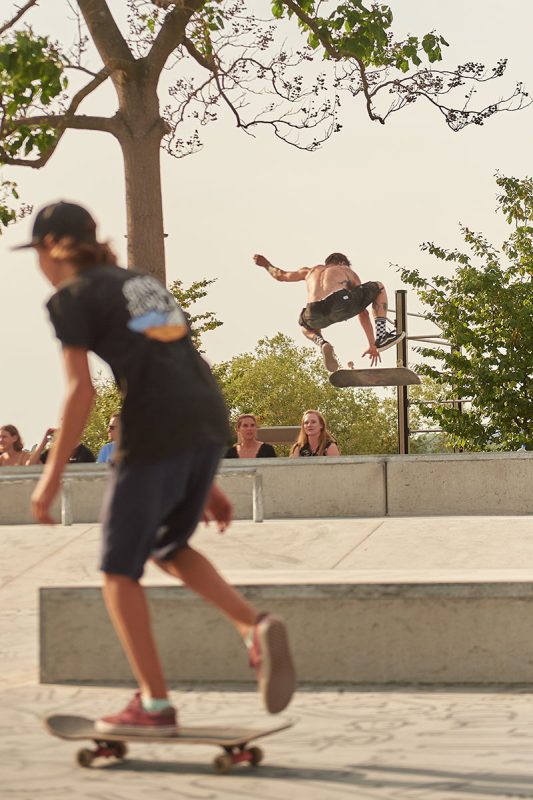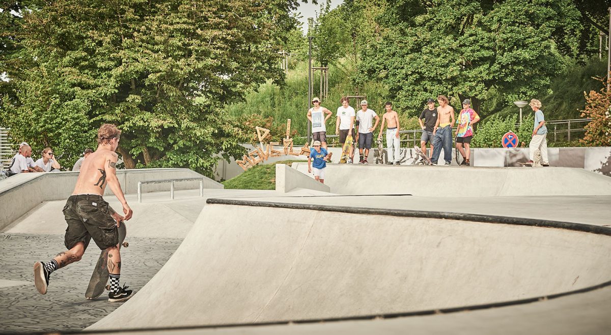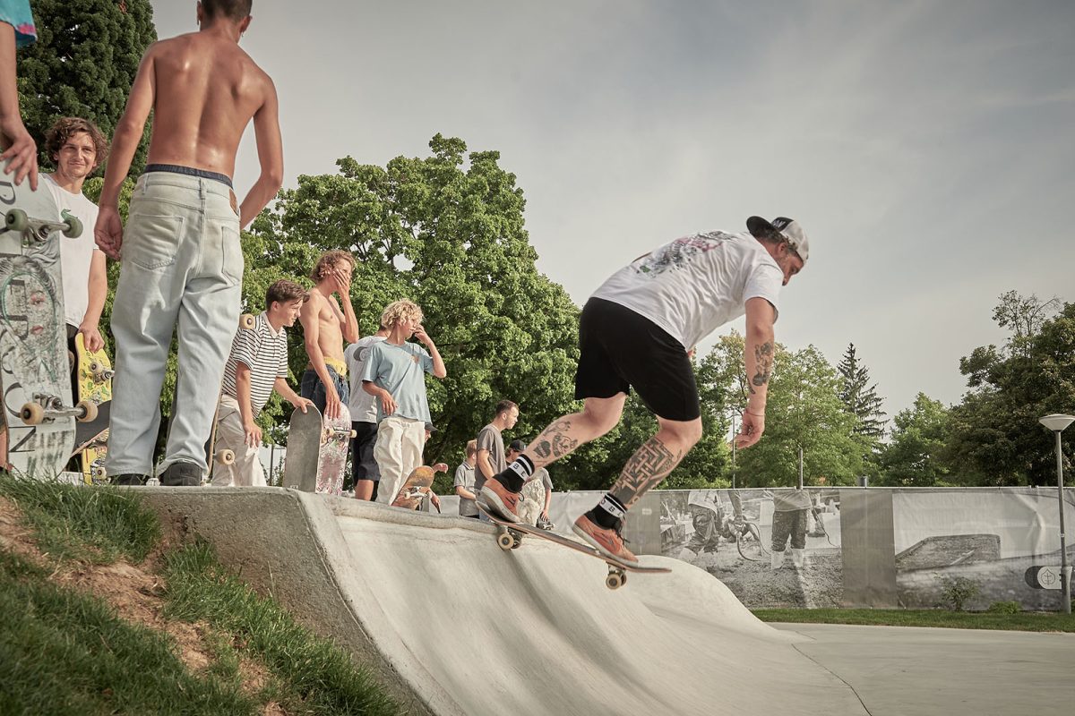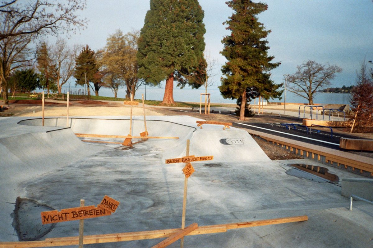 The old park was average, made of precast elements, so nothing special to mourn after. But this loss was still a big bummer because it was well-known in the region for its premium location on an island next to the old town and just some steps away from the lakeside. It was the main meeting point in our youth til now: a place to skate, to take a swim between the sessions, watching lake sunsets and hang around as long as you want. How can we skate, gather and swim right at the same spot from now on? And what about all the memories connected with this place which helped generations of skaters and friends to survive this tourist-town.