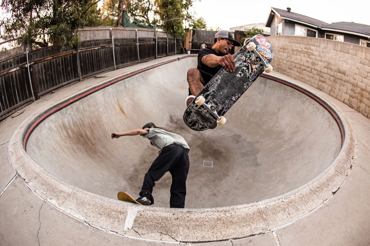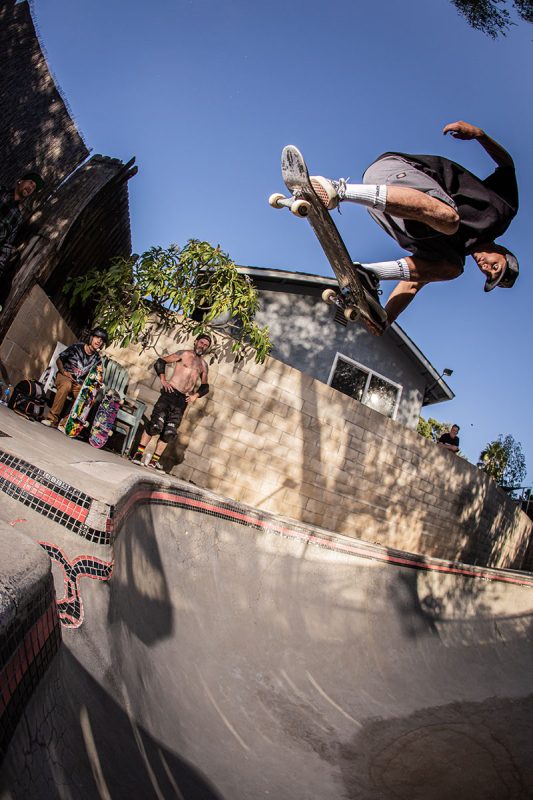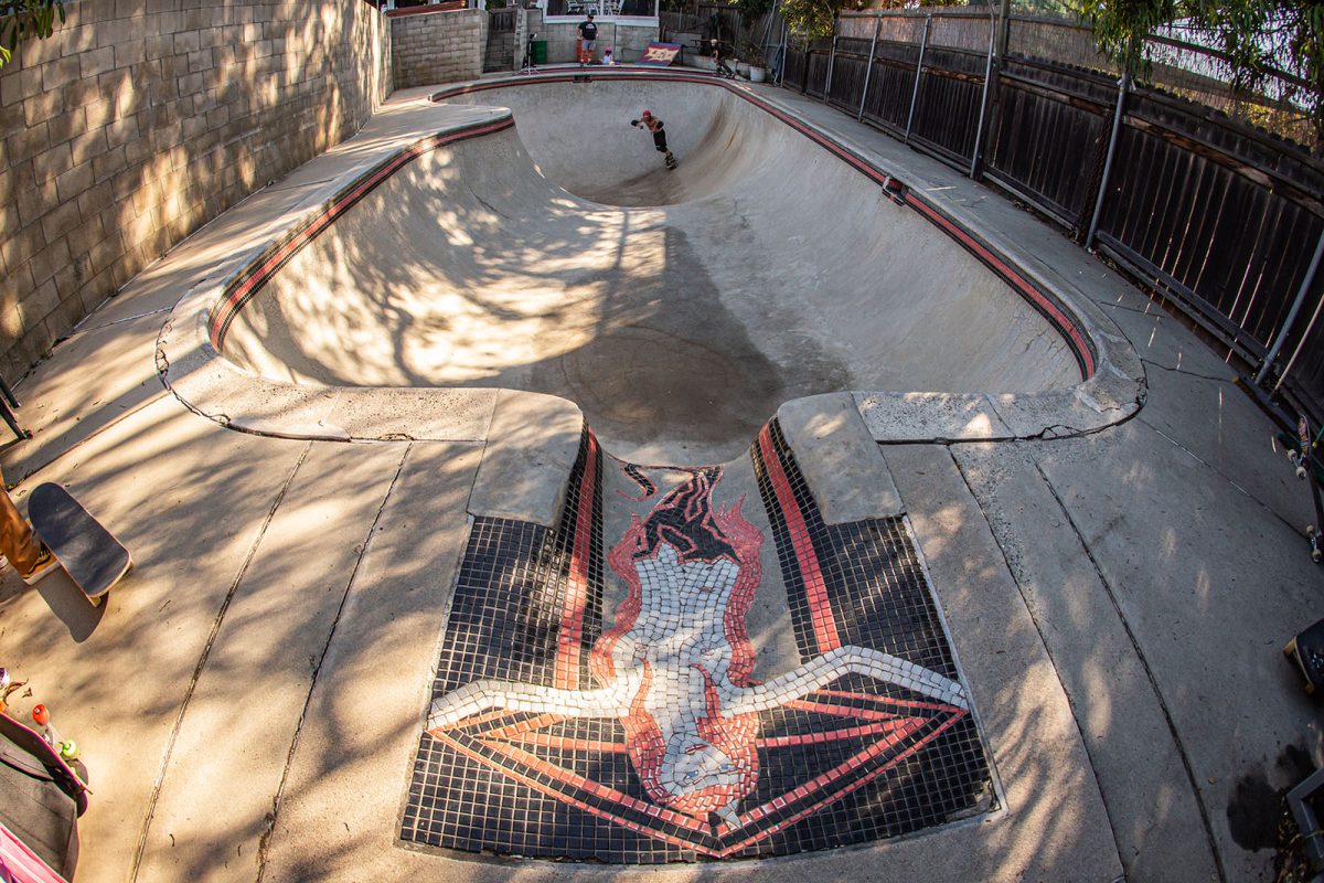 Chicken’s PoolDoubles with Andiey Lerman flying over someoneWyatt Hammond. One foot ollie over the roll-inKevin Bunk. Frontside corner grindNic Rivera. Frontside corner carve grindAndiey Lerman. Body bag over the channelWyatt Hammond. Frontside lipslide over the channelNic Riviera. Lien airAndiey Lerman. InvertNic Rivera. Standup grind over the hipIntern Artwork by Dirty