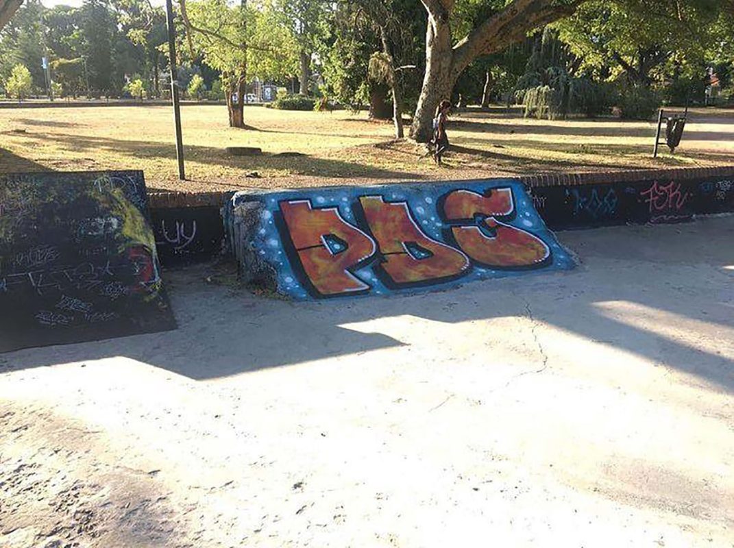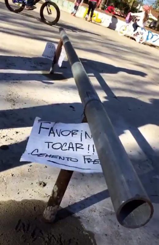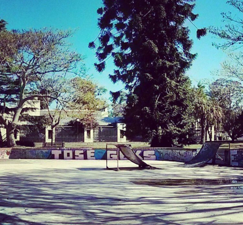 One of the quarters broke so today there is only one left. The first obstacle we built was a ledge next to the wall. This first try was a fail since the ‘Intendencia’ came by the next day and tore it down. The second try worked out great and ended up being our only obstacle for a long time. The ledge is still standing today as if it was his first grind-day. Sometime after this we decided to build a flat rail. With the help of Nano Carballo (one of the big forerunners of Conape) who ordered to forge a flat rail from a known blacksmith, we went to the plaza around midnight with a flowerpot and a couple of Santa Teresa wines and dug some deep holes to fit the rail, which wasn’t an easy job at all to be honest. The next day we went early in the morning mixed some concrete and finished up the flat rail which until today is one of the most emblematic spots of Carrasco.