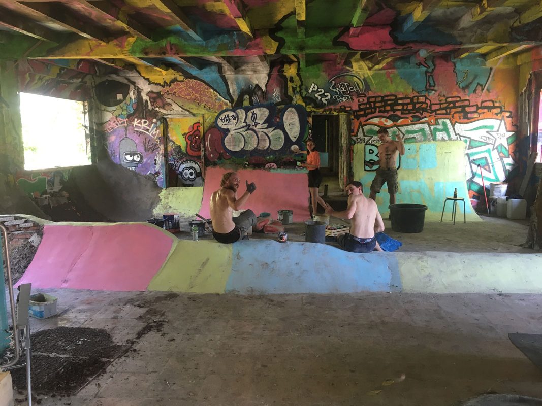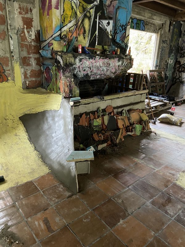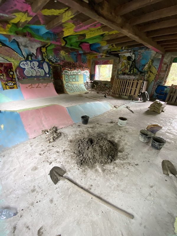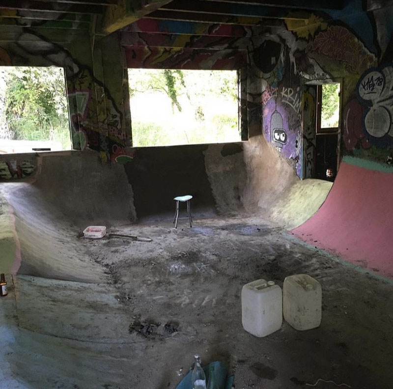 11 years later somebody told me about this house and it was the beginning of the DIY, the living room was very big and there is a roof. So when it’s raining it’s perfect, in winter too. We began to build a lot in March 2021, we were only two and a lot of friends of us liked the project, so they came to help us. The name Boca-shiva is a tribute to the original name and bocadillos specialities we eat when we go skate in basque country.