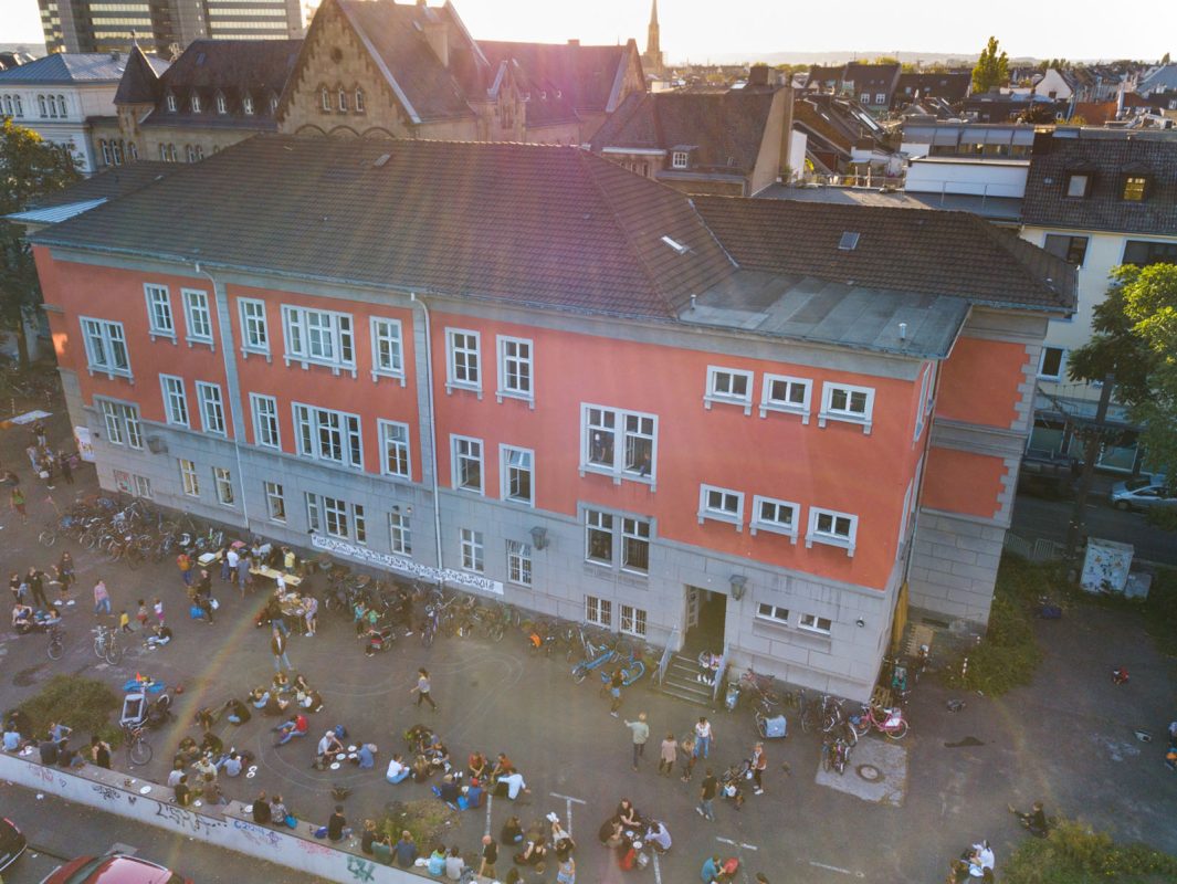 “In September 2018, the Rhizom e.V. culture club “rented” the former public education school in Bonn for one month to celebrate the clubs 10th anniversary. Two weeks later the rent got extended to three months. In December 2018 the 900 sqm, quality downtown location in front of the state courthouse became Bonns first autonomos sociocultural center. Till now.