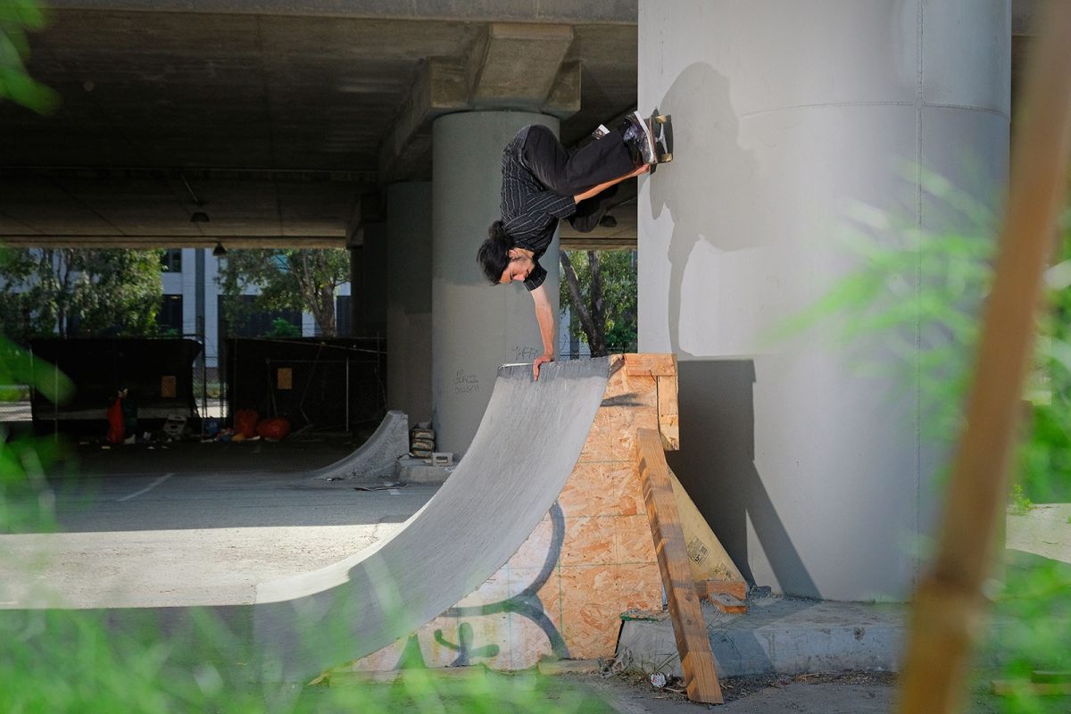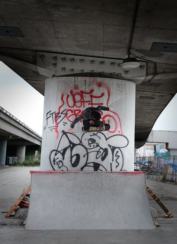 The fine folks at Turkey Neck posted a sweet edit of their creation under the 880 and it straight lit a match under my ass to finally compile my photos and clips from the time we spent on Madison. I encourage you to check out Turkey Neck’s edit, they portray a look from the builder’s view as we just represent a warmup view during our battle at that infamous Berkeley rail dubbed the “Roller Coaster“. Much thanks to those guys for building this spot as it served as the perfect warm-up during our covid missions to watch Jesse tackle that infamous NBD on the Berkeley beast. The underpass quickly became the spot to assemble the crew, get some ripping done, and determine if it was time to head to that fucking monster of a rail that kept us all up at night. Also believe it or not, even though we were in the thick of the pandemic this spot was safer than most – even with the assorted used needles, used sex toys, and crack heads hanging about… definitely a safe haven during a sketchy ass year.” – Bruce Rodella / @4wbsThe Homeys. While none of these suckers poured a drop of crete they all ripped the shit out of this place…… Thanks for the good times dudes and a huge thanks again to the crew that built this gem.Jesse Boudreau. Wall Ride. Look Ma’ No Hands. Pre no shitting graffiti can’t stop Jesse from a sweet Let Me Ride…… while others choose to grab the Wicklow Wizard gets in there unassisted. Pure radness!Jesse Boudreau. Backside ollie boo ya’ blaster. Got a good angle? Jesse is always down to fill your viewfinder with radness! Nick Zacharias. Backside feeble grind. If you’re going to do it, you may as well do the whole damn thing!Jesse Boudreau. Even with the fear of catching a communicable disease The Wicklow Wizard wasted no time placing his hand in the dirt to catch this handplant revertRusty. Hurricane. Favorite obstacle under the freeway? The quarter was leading the race until this beauty of a spine made its debut towards the inevitable demise… even pro mountain biker Rusty destroyed it like he still skated.