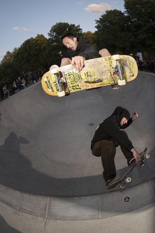 You see, old rippers suddenly having runs and tricks they never did here before, you see nine year olds pushing higher then ever and then you have guests who get all crazy. Let me name three: David, Jason and Toon. David had unbelievable stay on runs with like 30 tricks in them. Jason and Toon? The moment they decided to go for the doubles in the finals’ jam sessions, both, in the pool and in the bowl, were the moments everything got steamed up till it boiled. Giving us a well deserved last trick, Jason pulled a 540 melon grab transfer from the deep end to the middle section of the bowl, after kicking it all day. What a day! And the officials have been stoked as well. Greets from Bonn, see you this summer.” – Jo Hempel