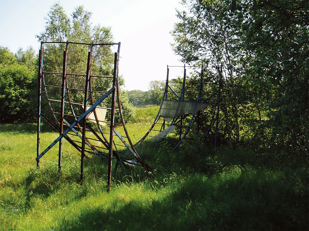 Falkenberg, a town on the Swedish southwest coast, is a surprising setting for a historical skatepark. Not much can be seen at first glimpse; you pull off a small country road and are presented with open land surrounded by traditional cottages. Edging closer, you hit a scrap yard with old cars, caravans, and metal sheds. Your vision is then steered to a set of rotting wooden stairs leading to a rickety boardwalk, taking you up to a 35-metre-long concrete snake run, called Automobilen.