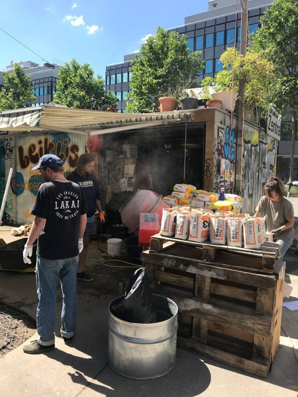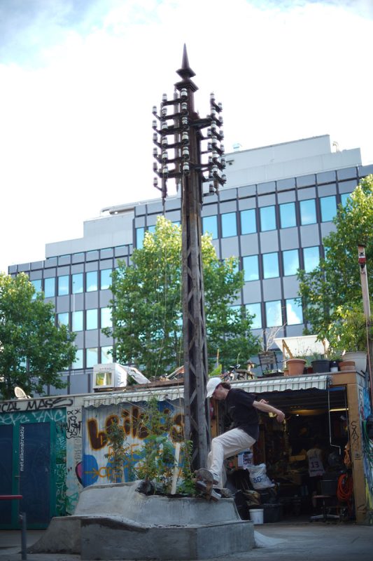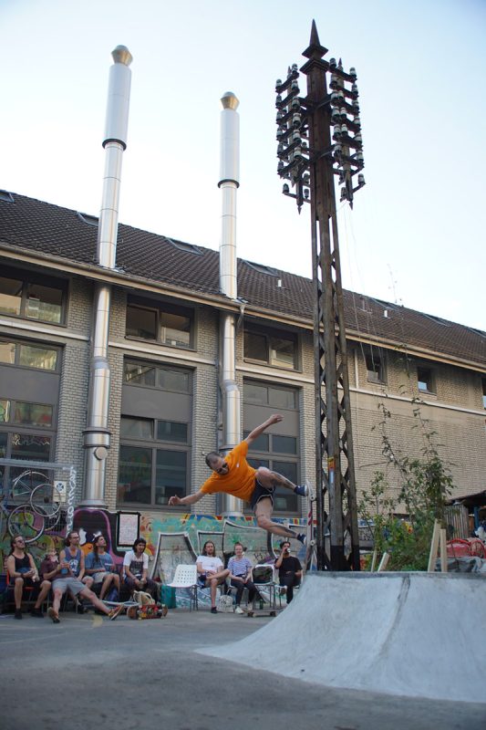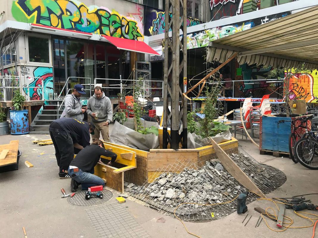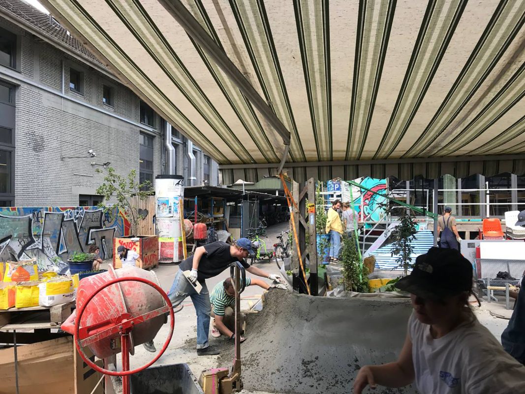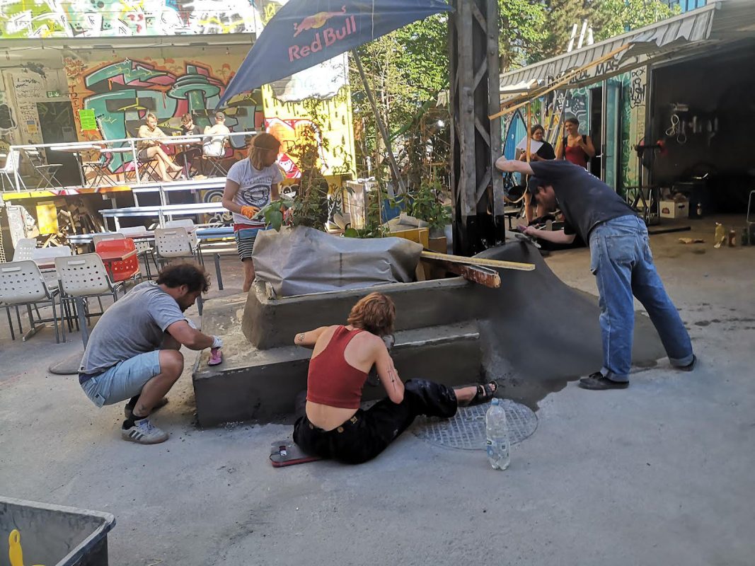 We, a team of experienced and inexperienced DIY skatepark builders, craft- as noncraftpersons, skaters and non-skaters, have designed and built a concrete element in a participatory process. The element is first thought as a flower trough, at the same time its a bench and above all from all sides a small to large challenge for skaters.