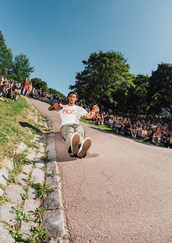 The format had to be changed a bit since it’s short and narrow. So the tournament format was the way to go. Plus, it lasts longer and you get to see people race more than once. My friend Oki at MFT skateshop has been helping me out since day one and Marius hopping on the mic was an easy choice.